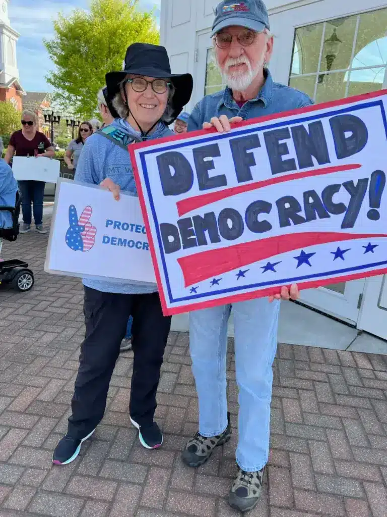 Kate and Ross Powell of Southwick were there to “protect and defend democracy,” and Kate McElligott of Ludlow, was advocating for the National Parks.