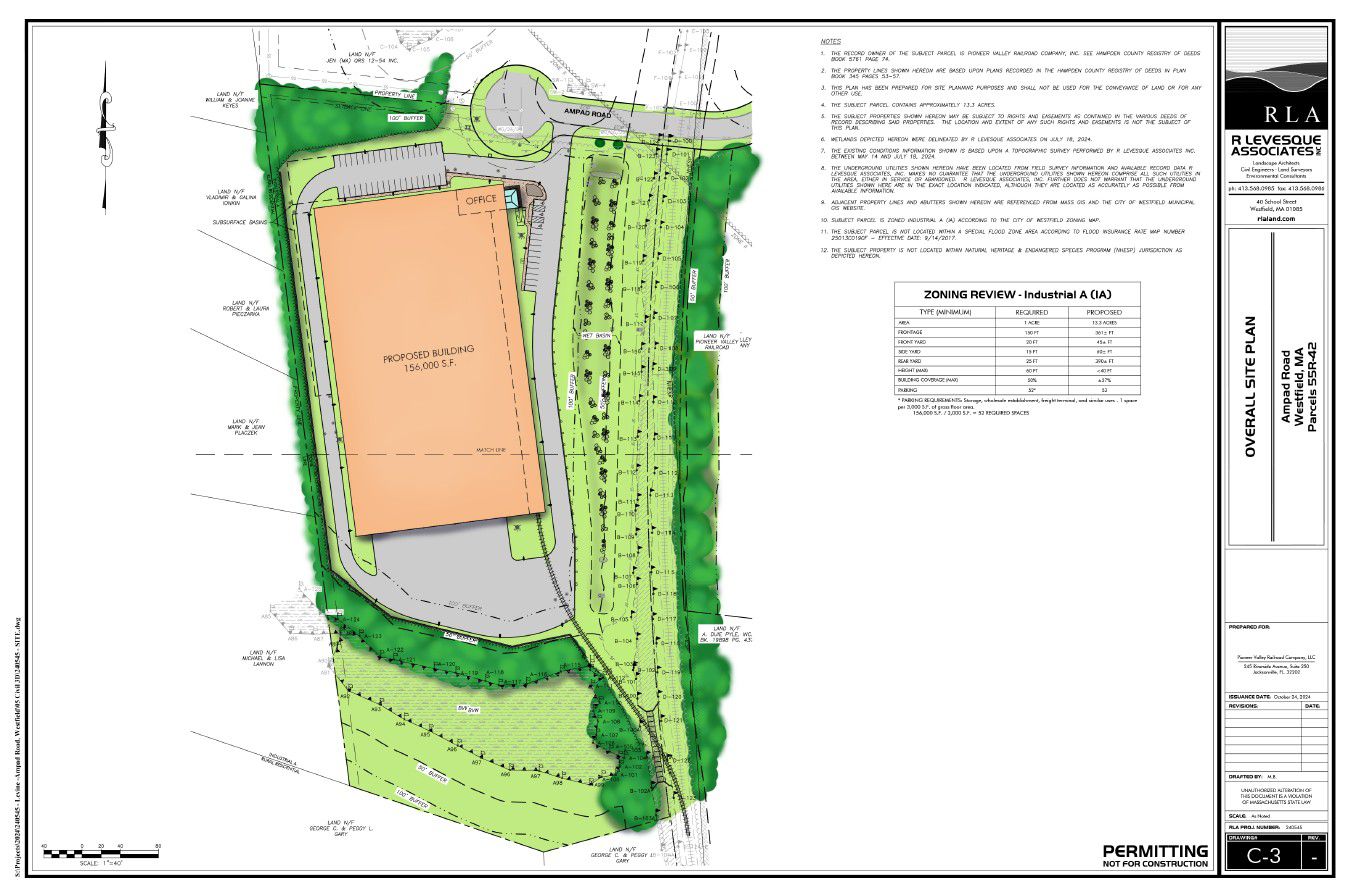 Plans by R. Levesque Associates for Pioneer Valley Railroad’s 156,000-square-foot warehouse on Ampad Road in Westfield.
