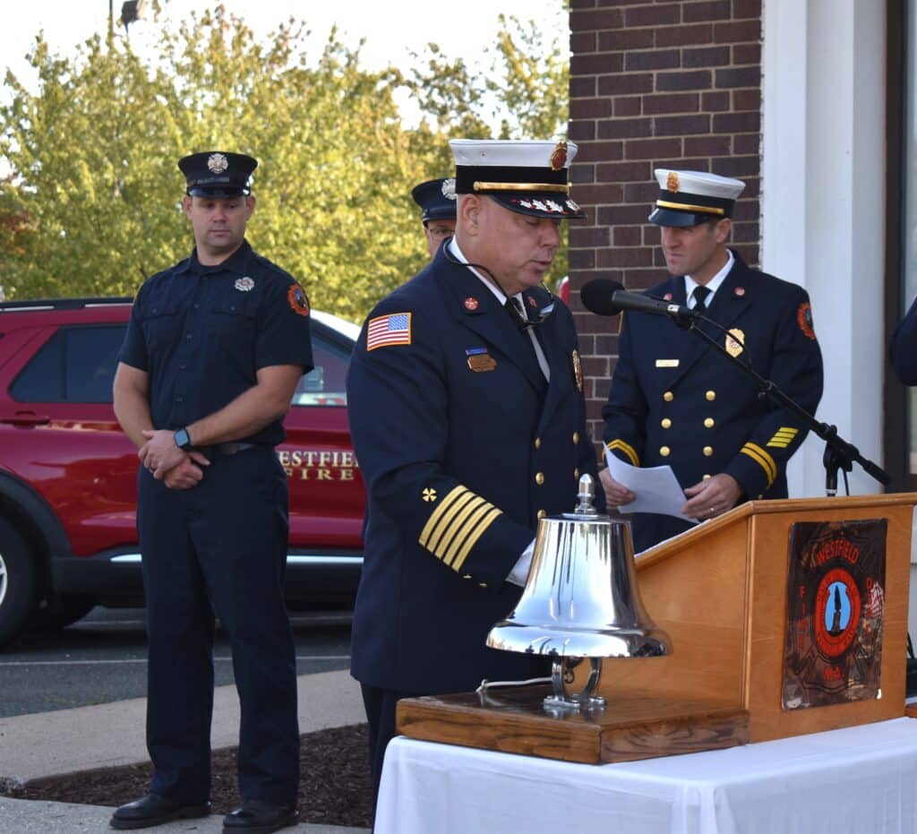 Fire Chief Patrick Egloff began his remarks by naming Tara Shea-Creamer, Brian Murphy, Daniel Trant and Thomas Holohan and all of the victims of 9/11, especially those from Westfield, and all of the emergency responders, fire and police who answered the call that day. “We will never forget,” Egloff said.