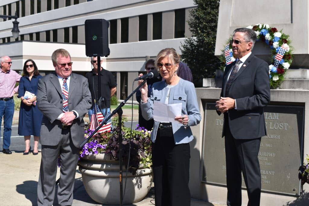 “It got me thinking about this memorial in Westfield and at the Sons of Erin and the deep meaning they hold … We can’t erase the events of Sept. 11, but we can move forward with compassion … the compassion that has unified us these 24 years.” She said the families can feel the compassion at all three memorial services, and see it in the eyes of everyone who attends.