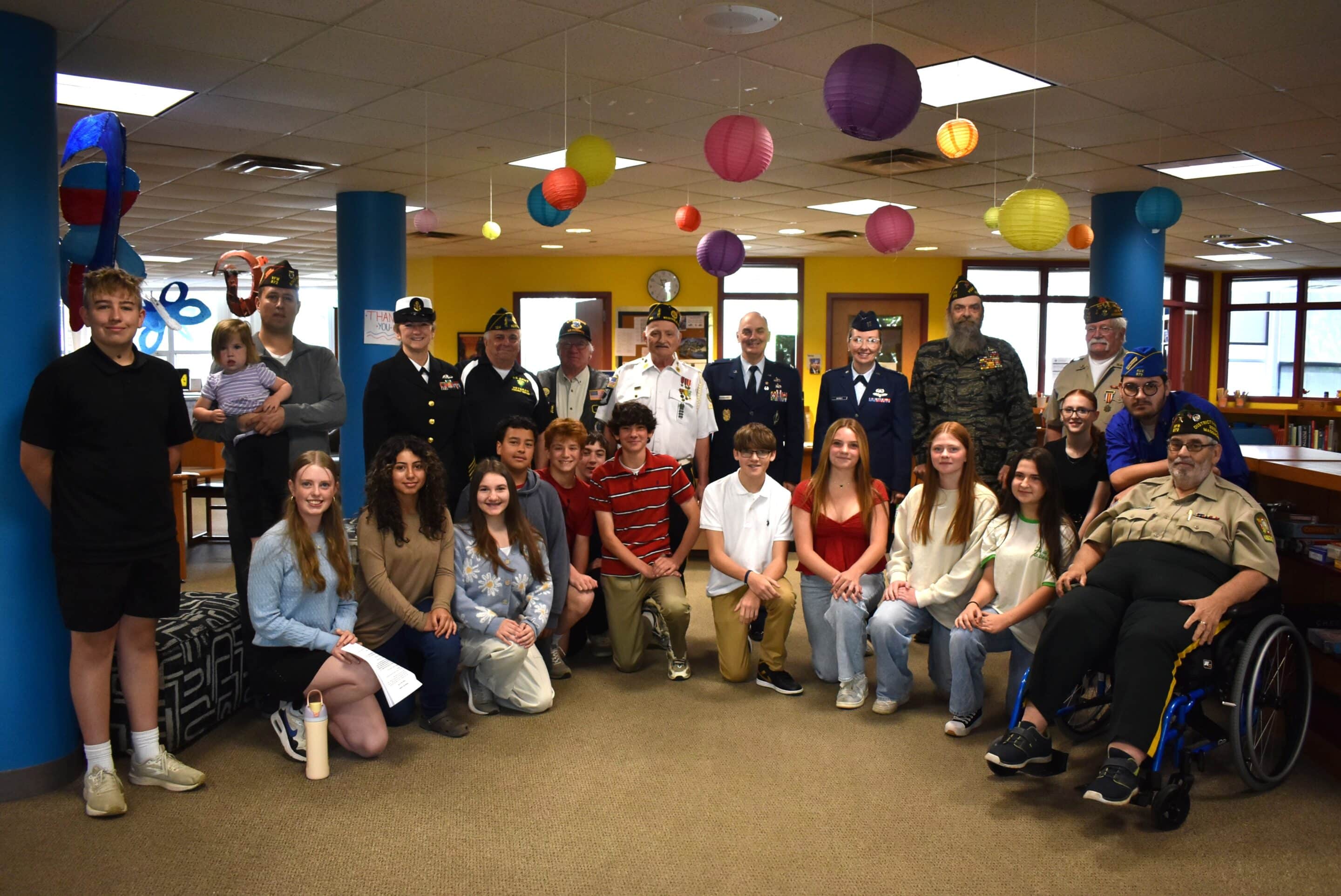 Organizers for the event were Patrick Dufraine, a STEM teacher, retired U.S. Air Force colonel and keynote speaker, librarian Sarah Scott and Assistant Principal Jennifer Leveille, who all welcomed the veterans. Dufraine was also keynote speaker in the assembly.