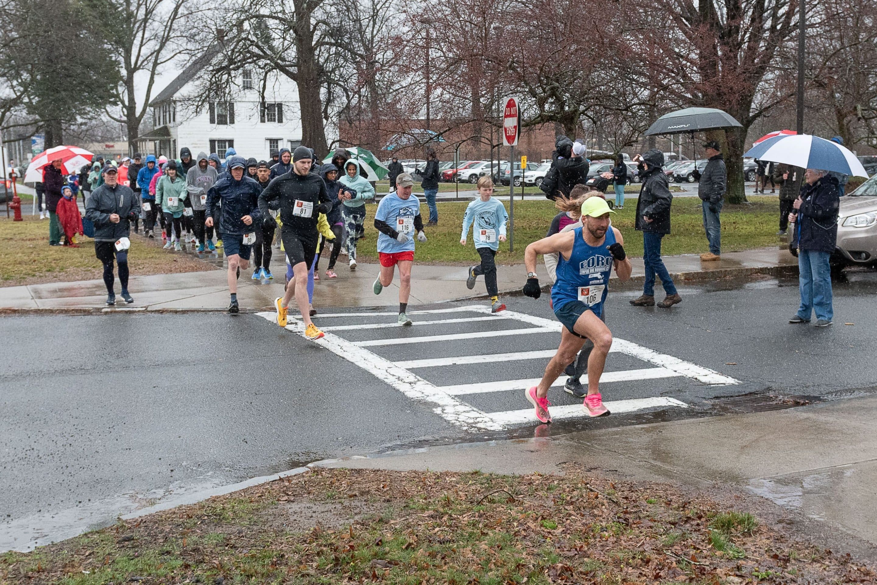 Glen Meisenhelder of Feeding Hills gets off to a good start and finishes the 5K race on March 23 in first place with a time of 19:16.7. The races, which began at Westfield Middle School, looped around the streets of Westfield and ended at the Boys & Girls Club of Greater Westfield, also included a 10K and the 29th annual Westfield Half-Marathon.