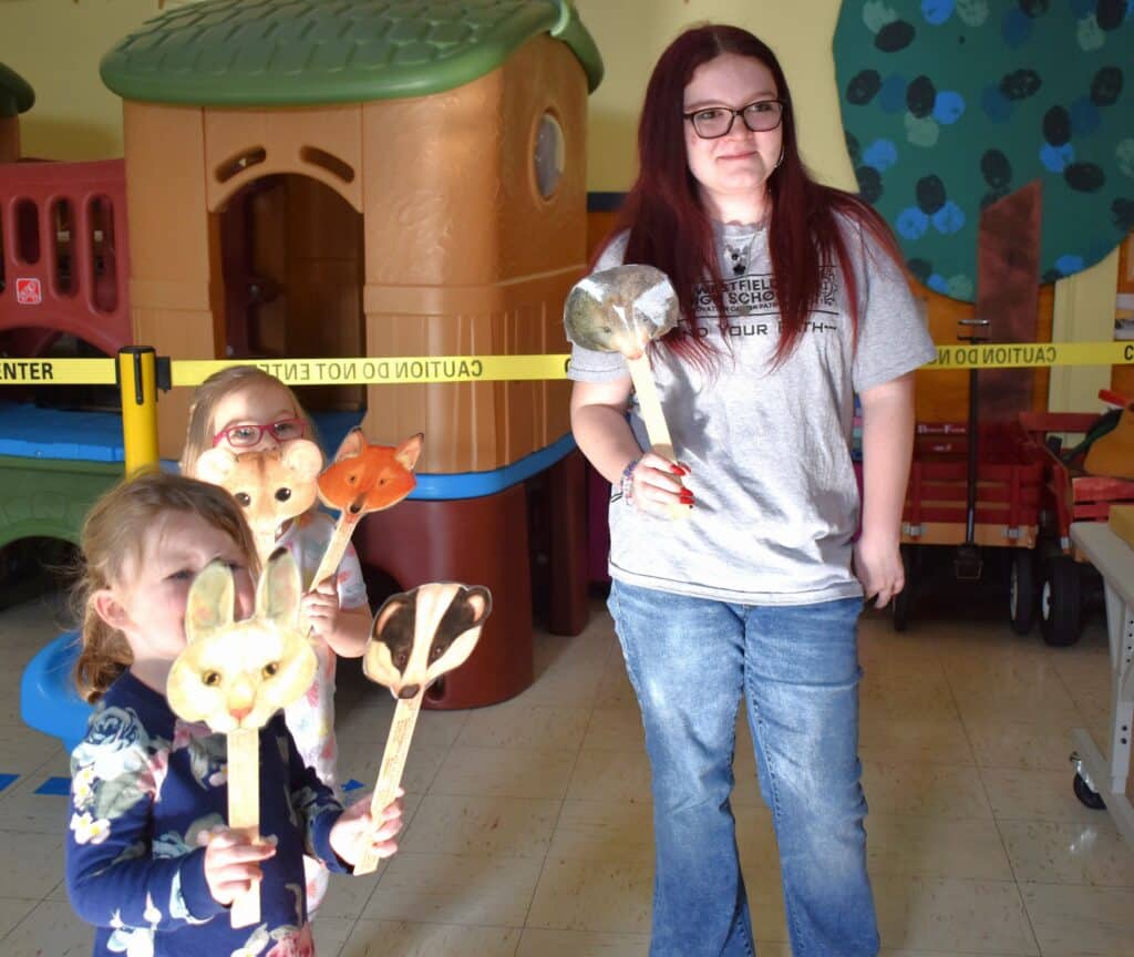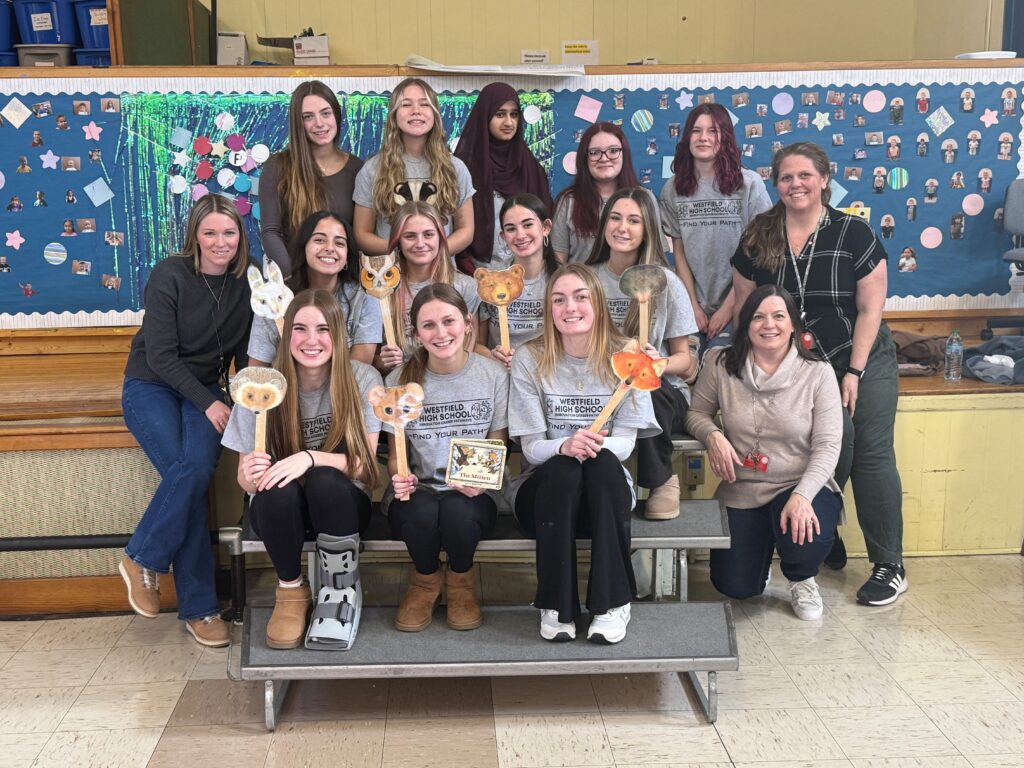 WESTFIELD — WHS biomedical pathway teacher Karen Saunders brought her 10th-grade anatomy and physiology students to Fort Meadow Early Childhood Center on Jan. 27 to run preschool STEM stations for 3 and 4 year olds based on author Jan Brett’s picture books.