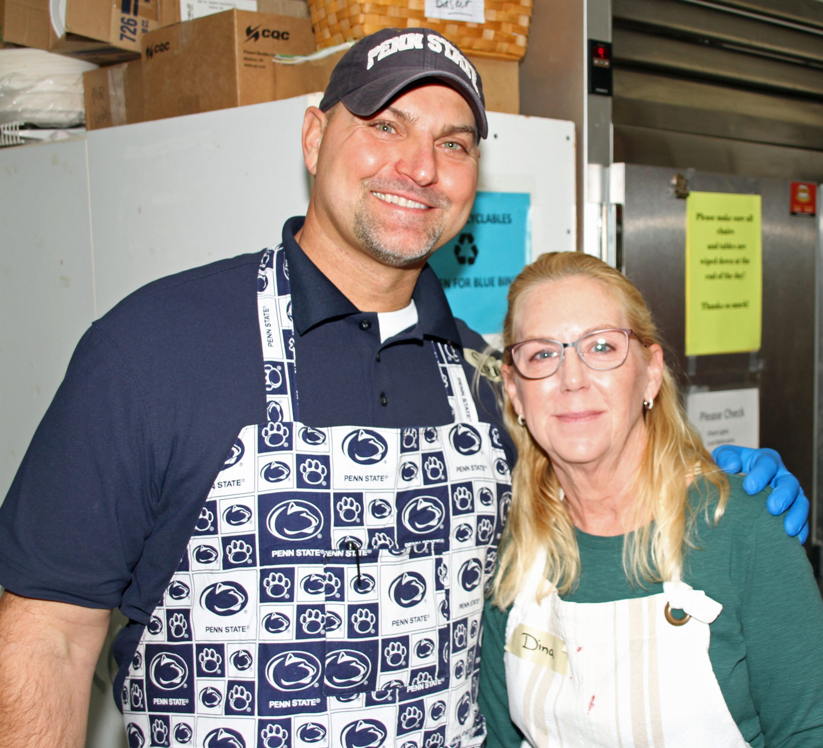 Steve Danneker, vice president of the Westfield Soup Kitchen, stands in for a photo op with volunteer Dina Mead.