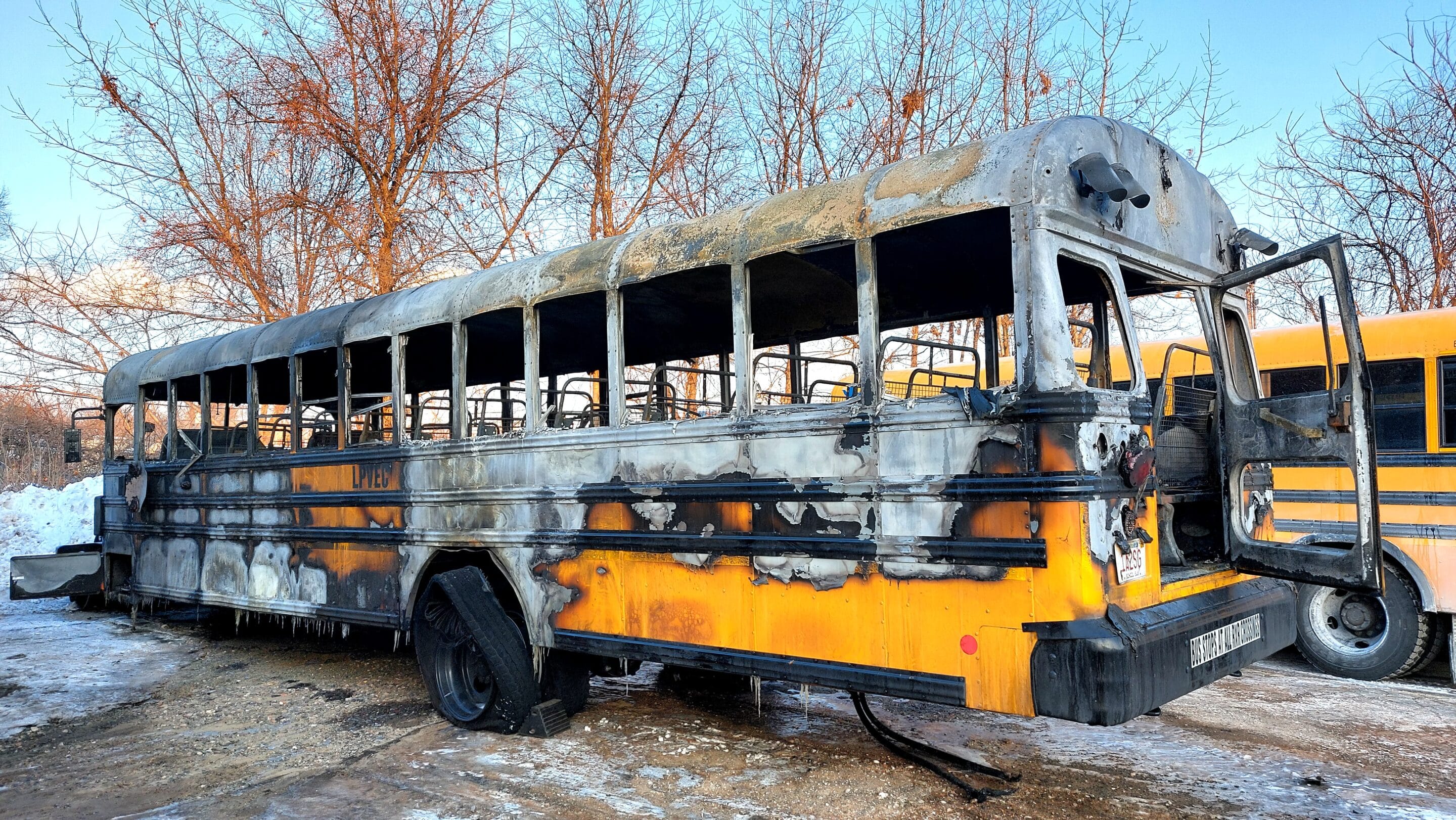 One of the buses that caught on fire Jan. 21 at the Lower Pioneer Valley Educational Collaborative bus garage at 2045 Boston Rd.