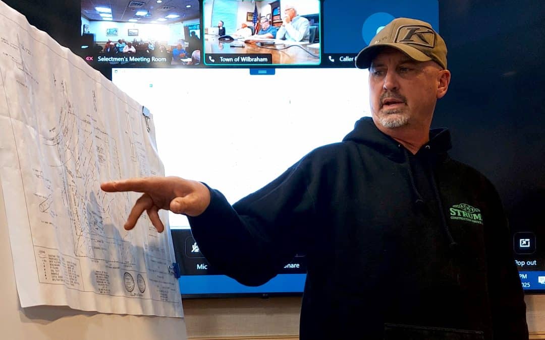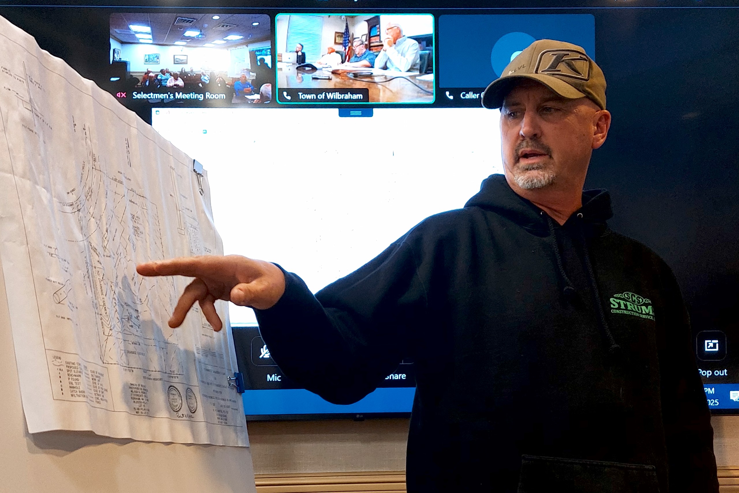 Contractor Daniel Strum points to the site of an accessory dwelling unit at 27 Stonegate Circle in Wilbraham.