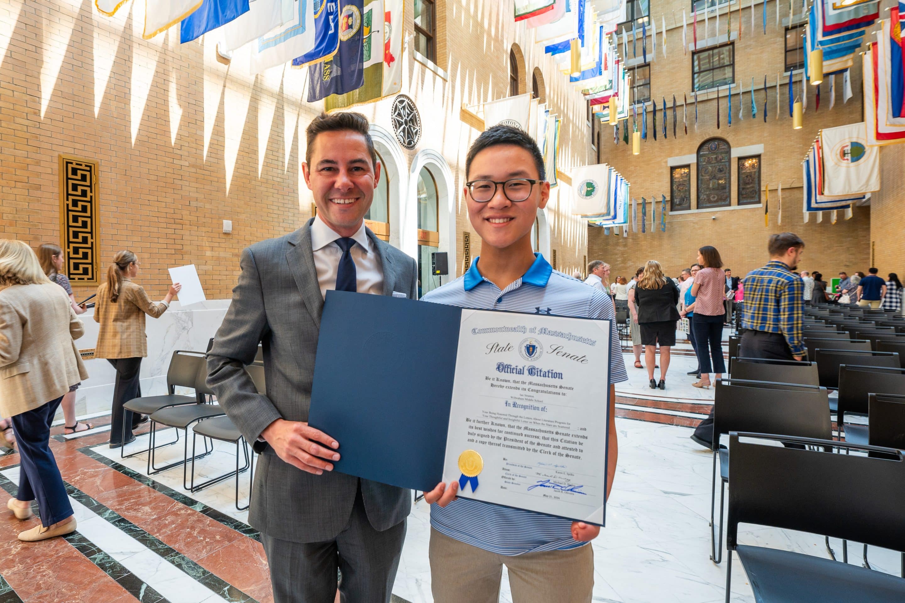 Letters about Literature second place winner Ian Stratton was presented with a state citation from Sen. Jake Oliveira at the May 21 ceremony.