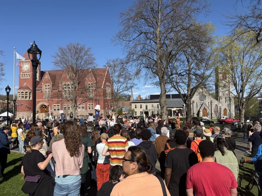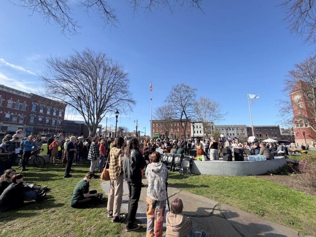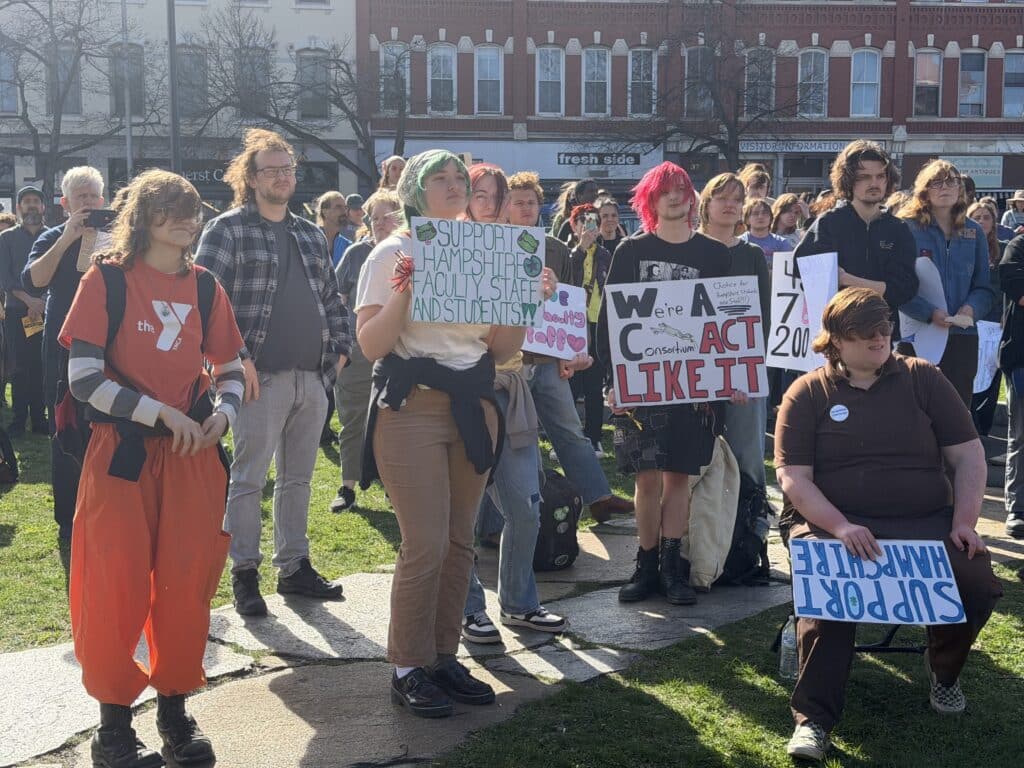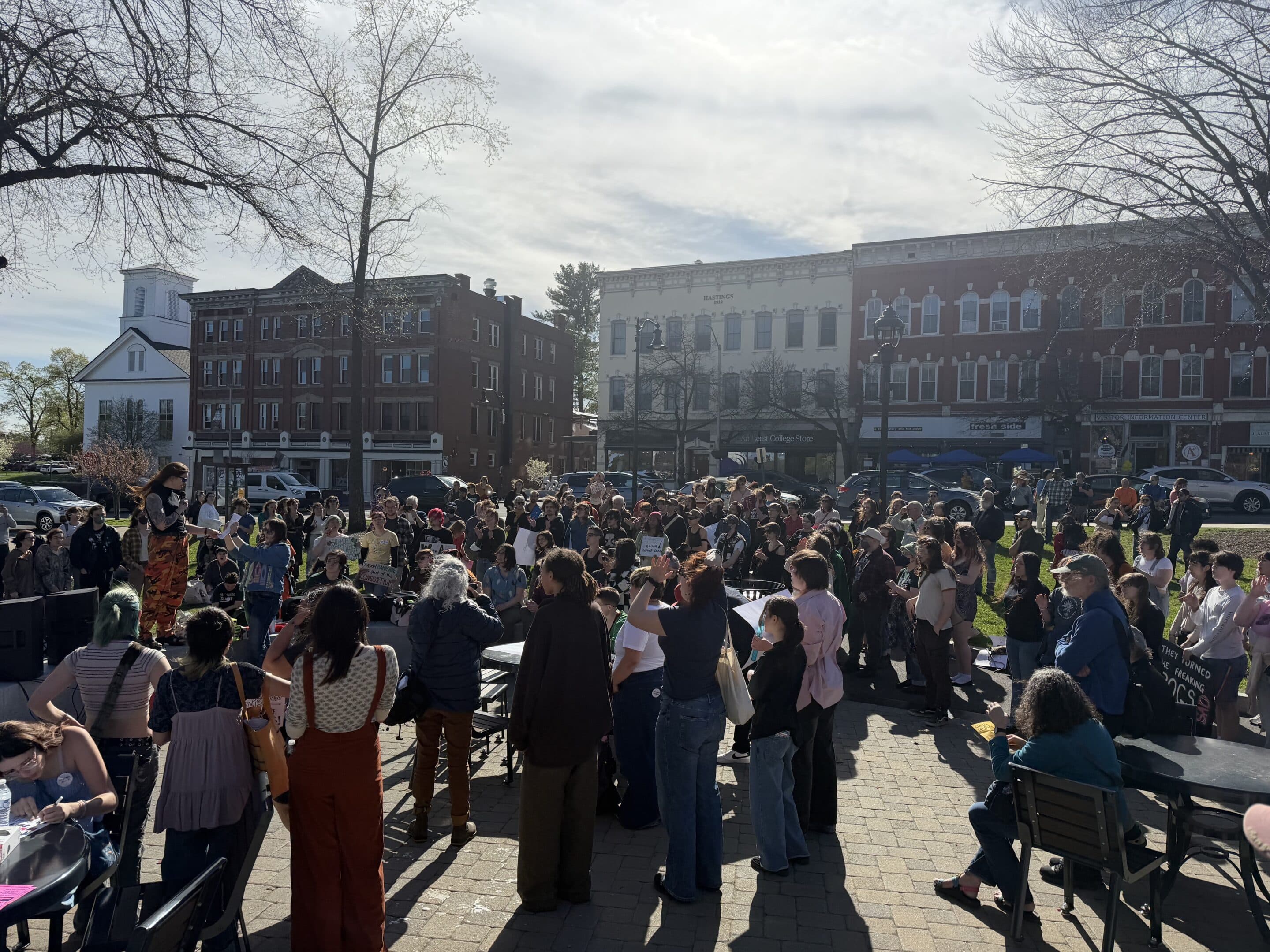AMHERST — Passion and fervor were wholeheartedly apparent when a large gathering of Hampshire College students, faculty, staff and supporters of the school rallied at the Amherst Town Common on April 23 to support those impacted by the school’s recently announced closure.