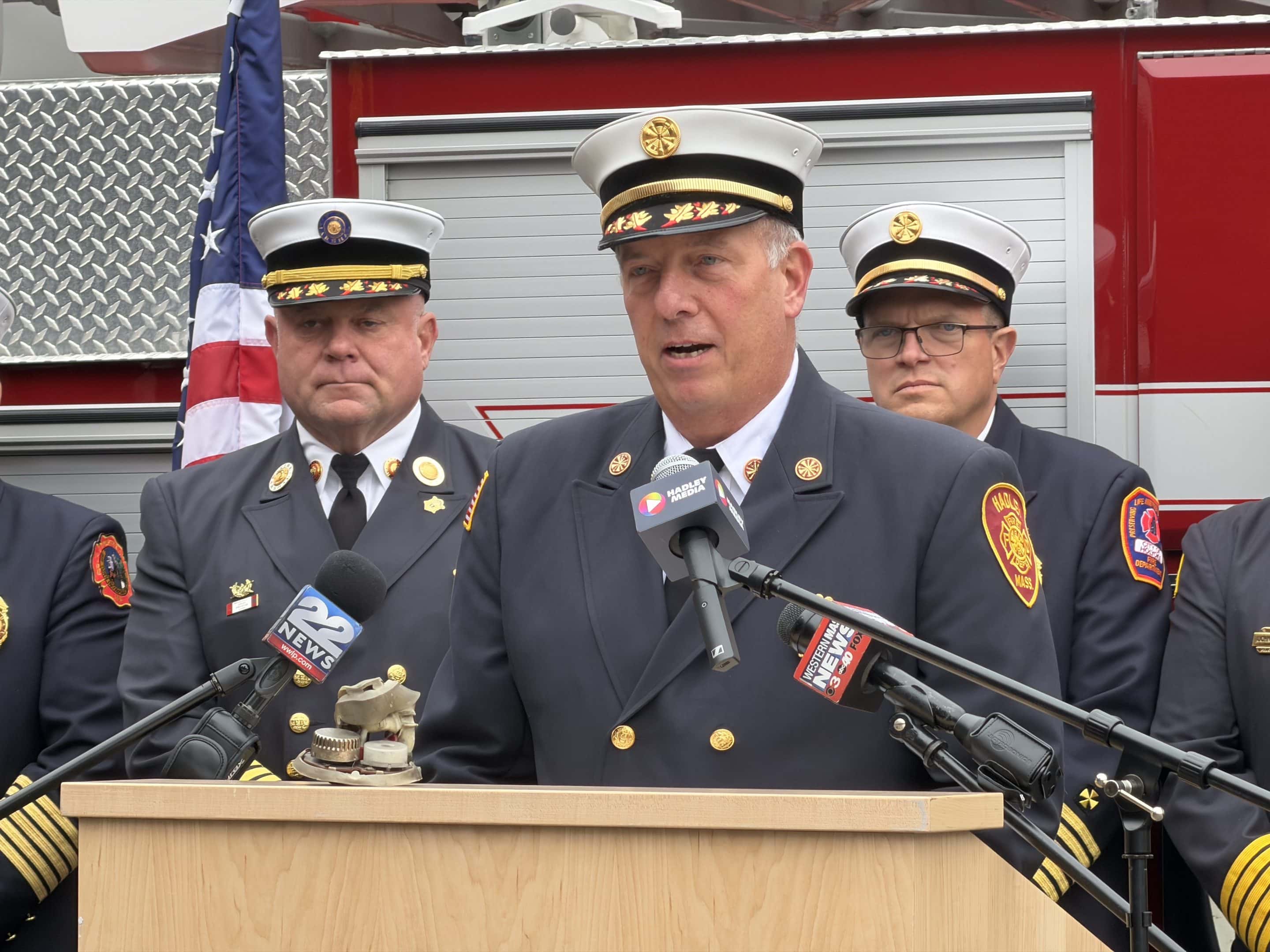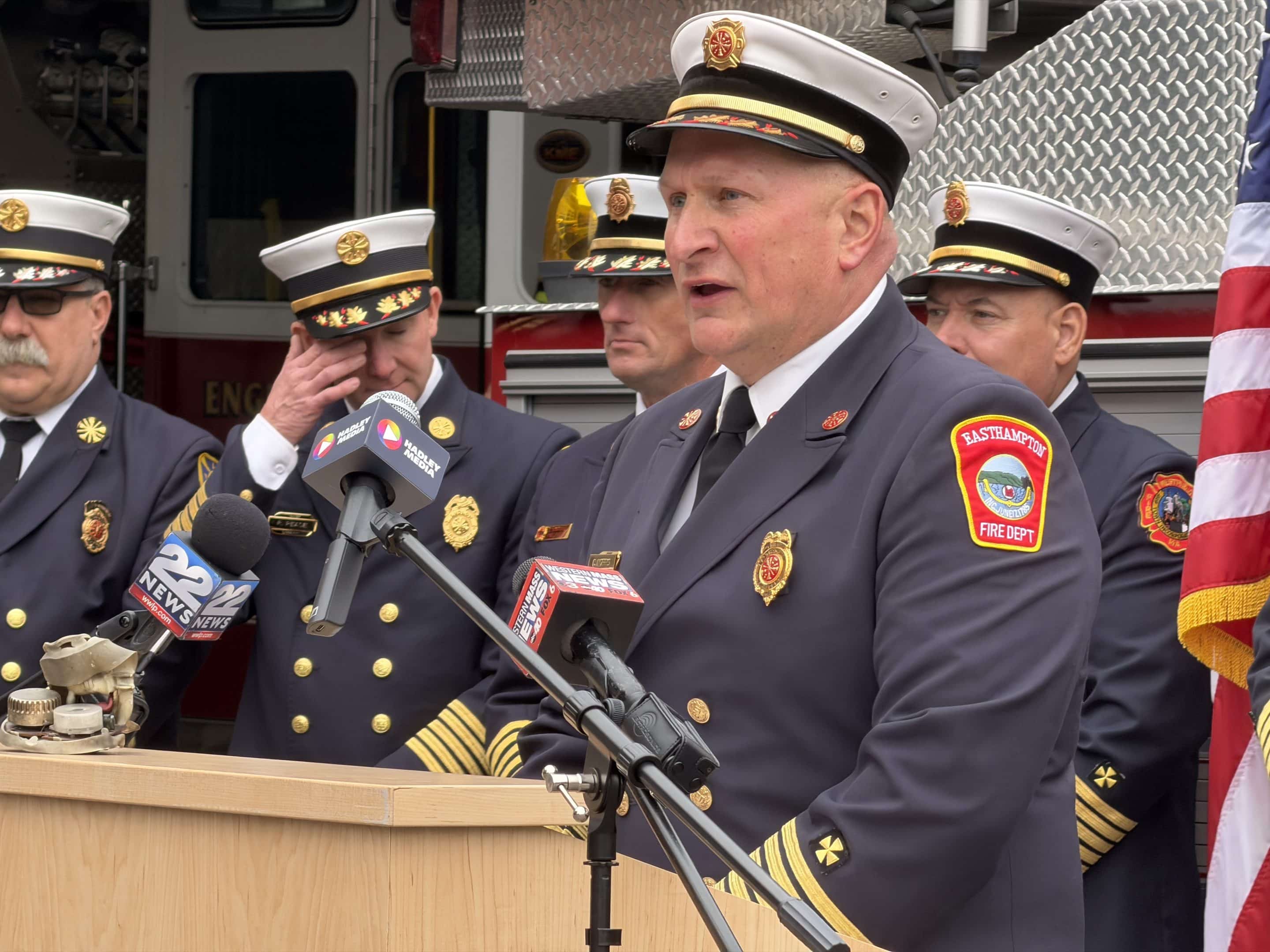 Easthampton Fire Chief Christopher Norris, who also serves as FCAM’s second vice president, hosted a press conference at the Easthampton Fire Department with State Fire Marshal Jon Davine and Hadley Fire Chief Michael Spanknebel. The trio highlighted the issue so the public is prepared to make the necessary changes in the name of safety.