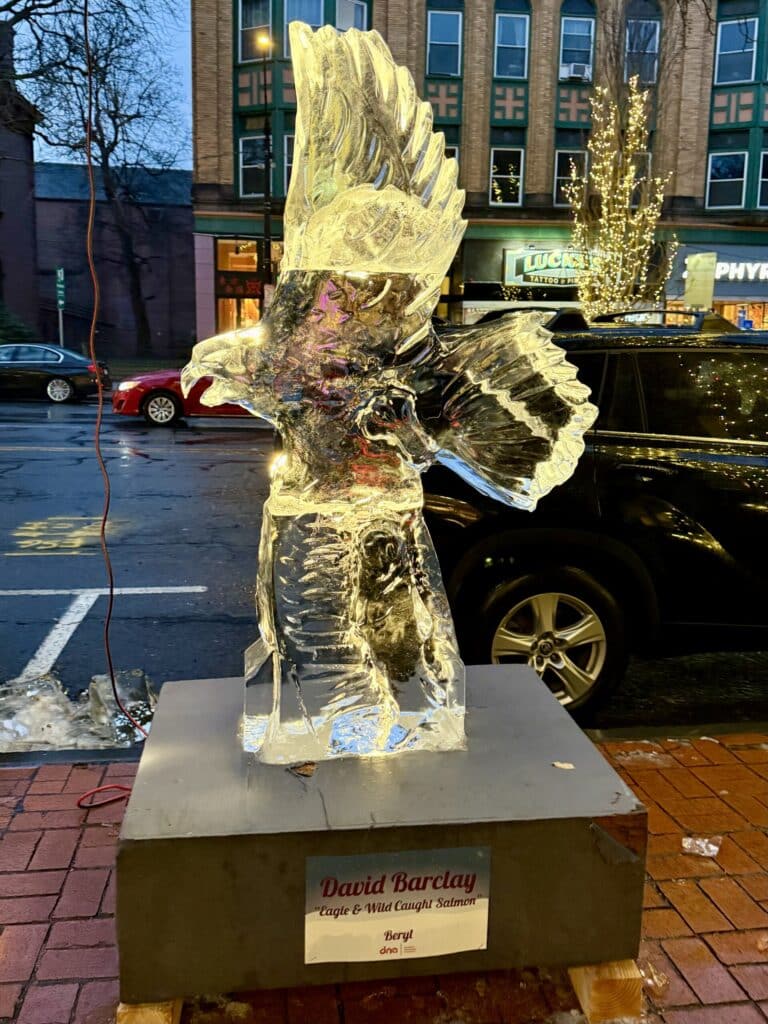 “It’s really amazing to be able to watch a carver work to completion starting from just a block of ice,” Northampton DNA Board President Amanda Shafii told Reminder Publishing. “Typically, stations get two blocks of ice each, delivered between 8-9 in the morning and then throughout the day, the carver works on their masterpiece, and it’s amazing what they can do. We’ve had dragons, we’ve had the Grinch, we’ve had so many different beautiful works of art, and it’s very fascinating to be able to watch it all happen in live time.”