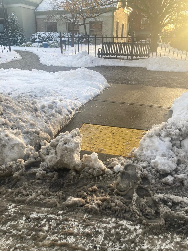 Dubs said while the morning was a stressful experience for him, he was glad he took some photos of what he dealt with because he felt it would help directly show some of the challenges faced by people with disabilities when the proper snow removal maintenance is not followed.