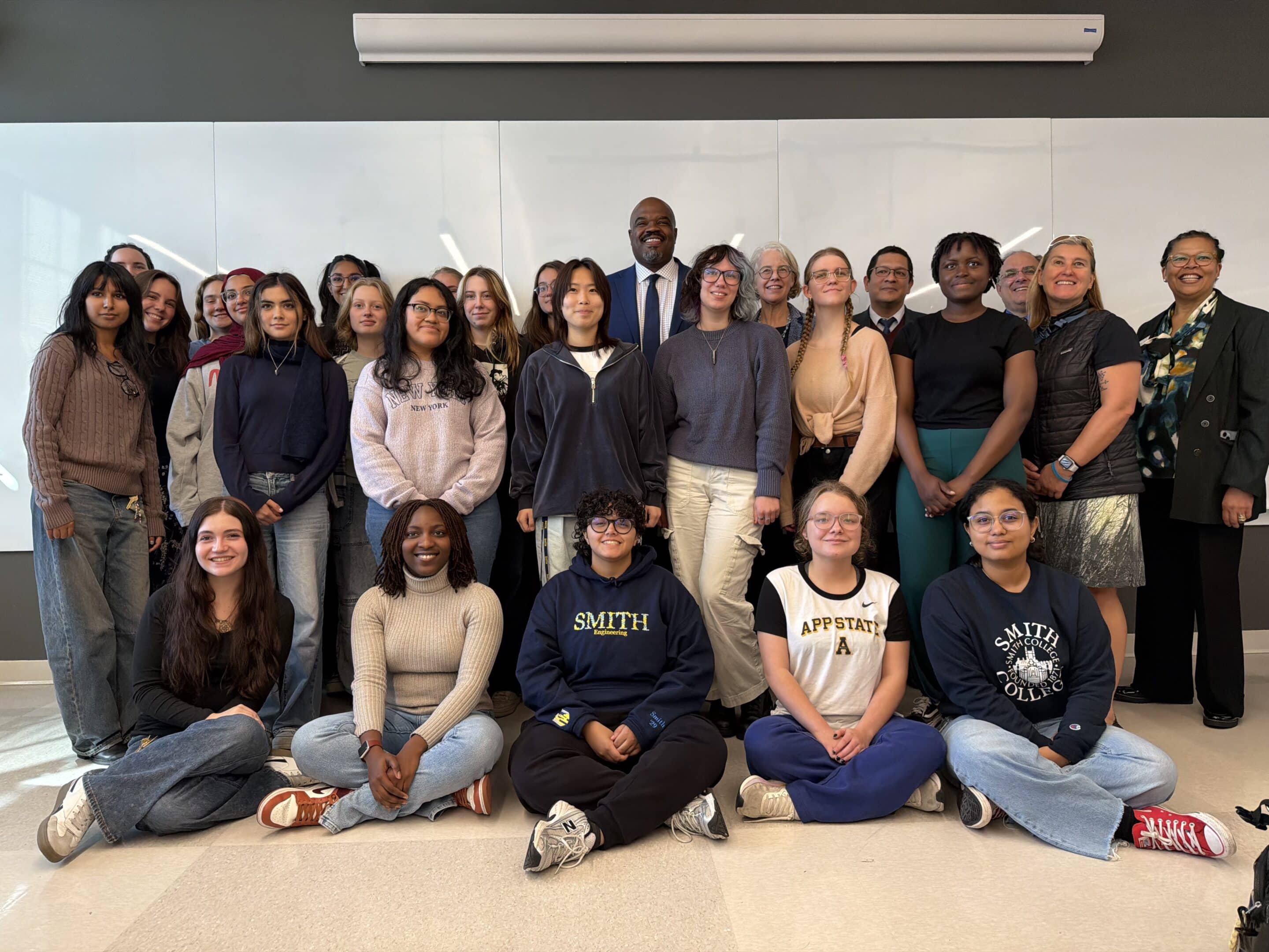Education Secretary Patrick Tutwiler poses with students of the Smith College engineering program — one of the first ever all-women ABET-accredited engineering programs — during his visit to the school during 2025 STEM Week.