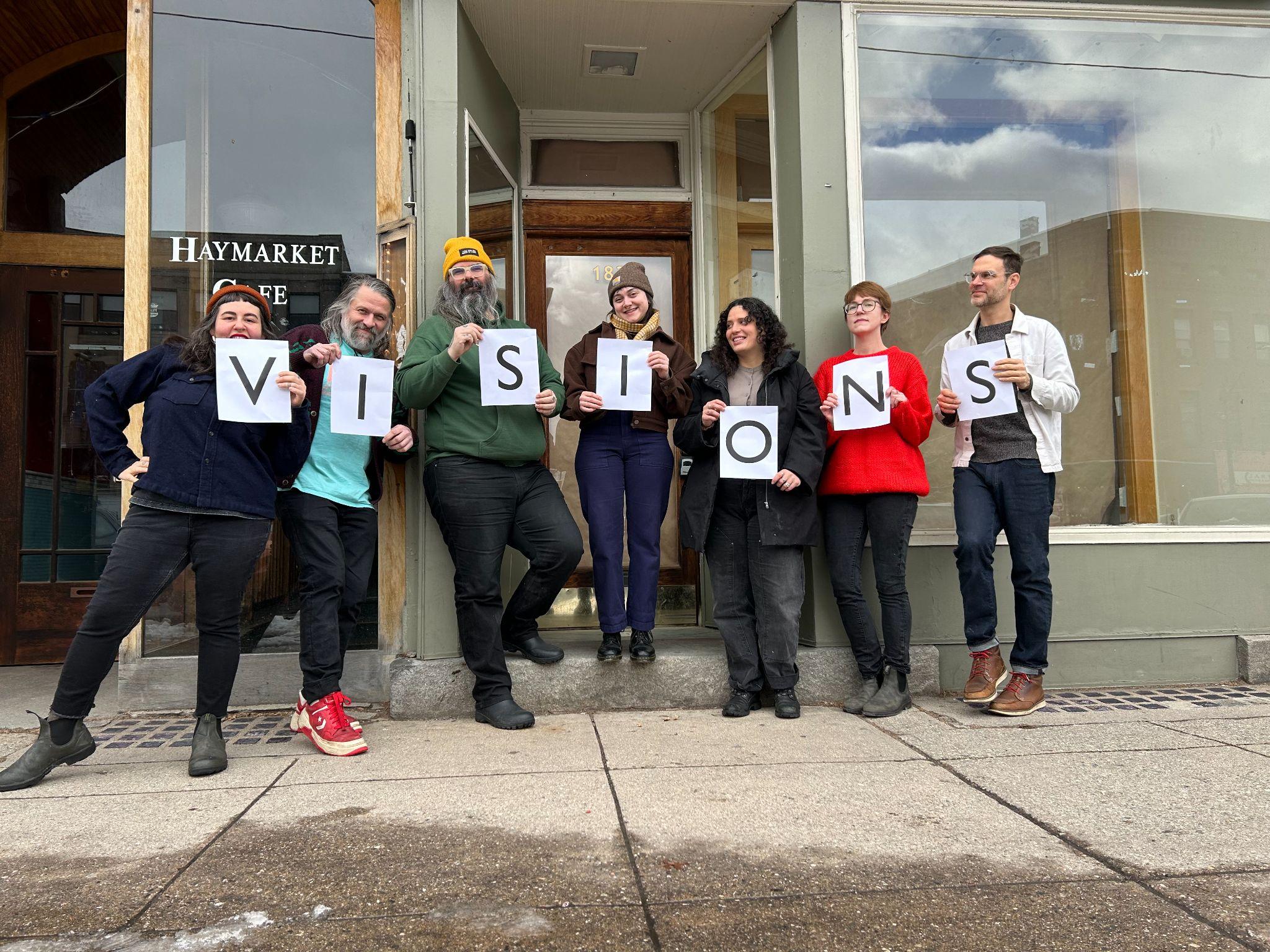 The Visions Collective. Left to right: Rayla Shawanda, Dan Cashman, Jesse Hassinger, Rachel Powers, Sarah De Araujo, Elle Longpre and George W. Myers.