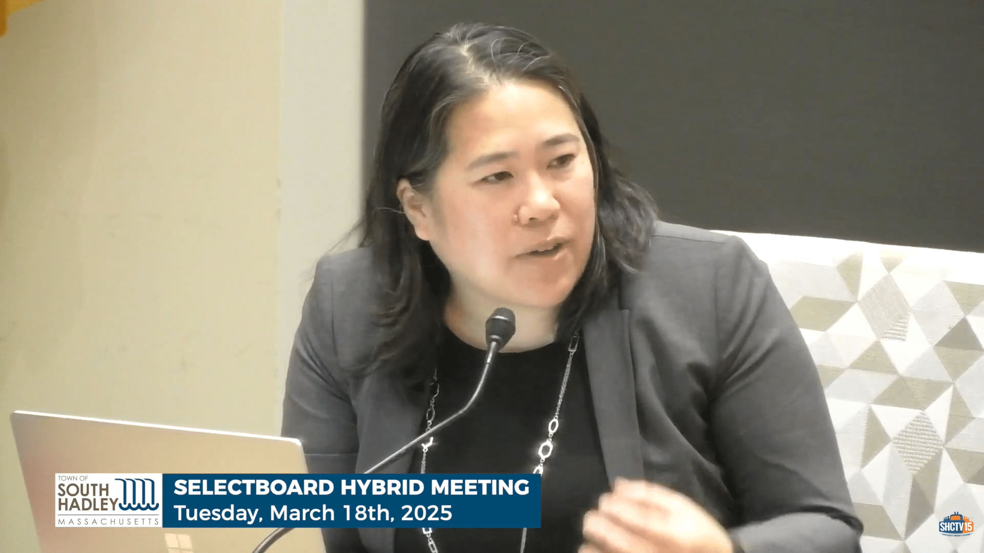 Town Administrator Lisa Wong discusses the FY26 budget and its next steps during a Selectboard meeting.