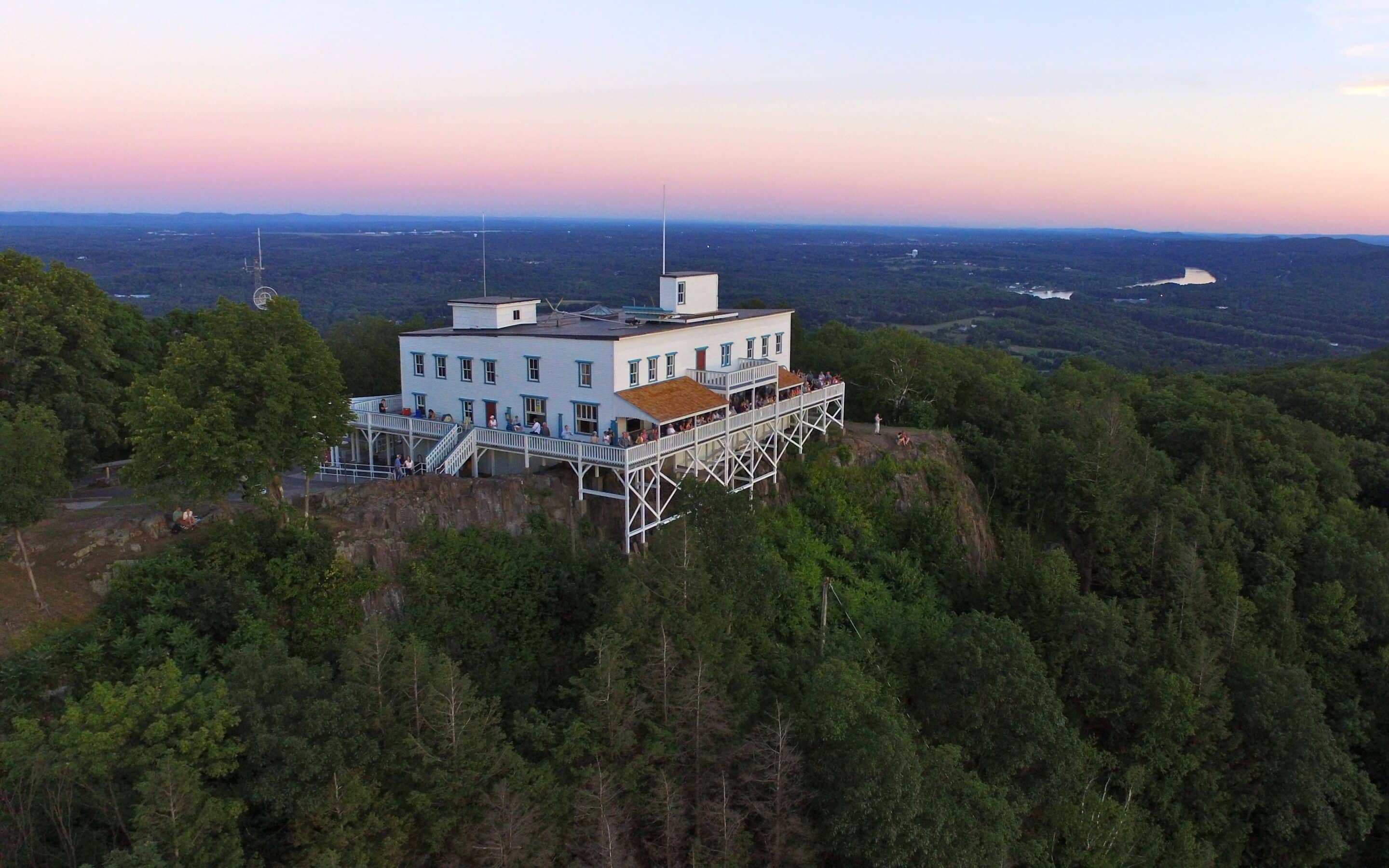 Aerial view of the Summit House where the Summer Concert Series takes place.