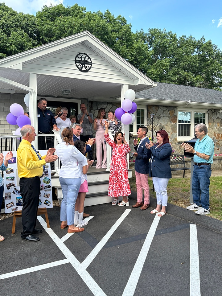Harmony House Board of Directors President Gina Mazza celebrates the ribbon cutting and official opening at 66 View St.