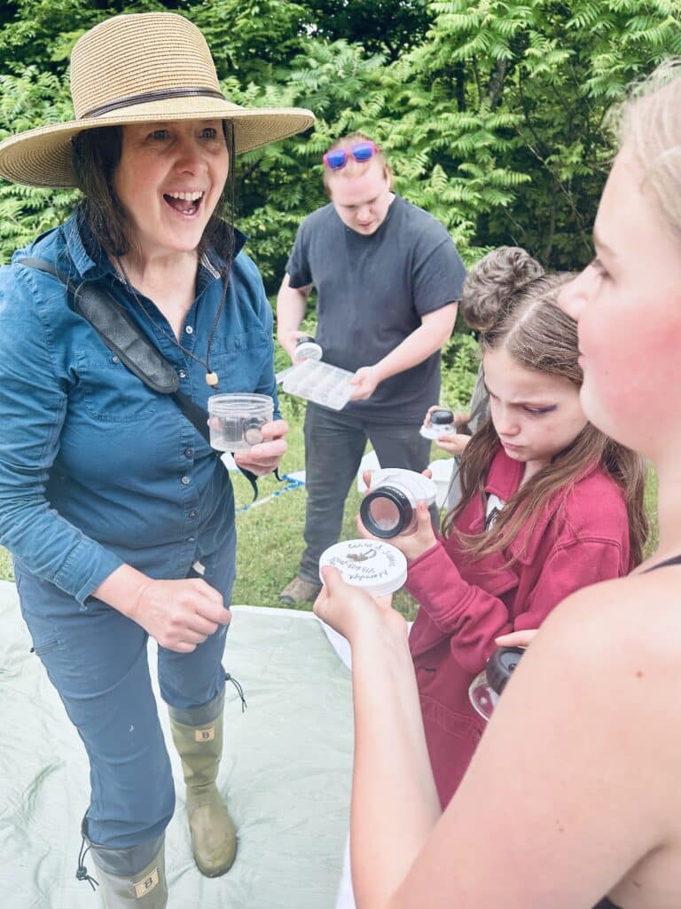“In addition to students learning that macroinvertebrates are invertebrates that are large enough to be seen without a microscope, they also learned the best places to look for these organisms are under rocks in the rocky, sandy river bottom, within leaf and plant litter. Students then learned another vocabulary word: detritus, dead and decaying plant materials — plant litter; how to handle and treat them with care; and how to identify different macroinvertebrates,” Maffuccio said.
