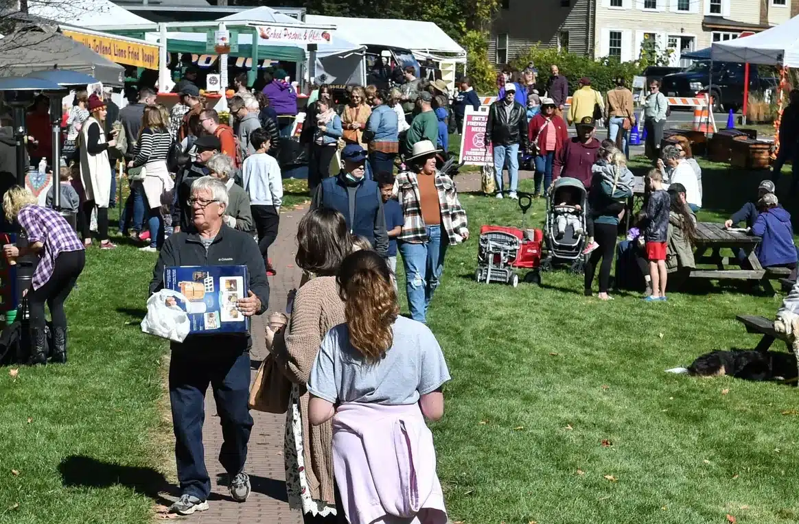 The fair takes place every year over Columbus Day weekend. It started as a quilt show in 1981 but has evolved into a town-wide event that includes tours of 160-year-old Noble & Cooley drum factory.