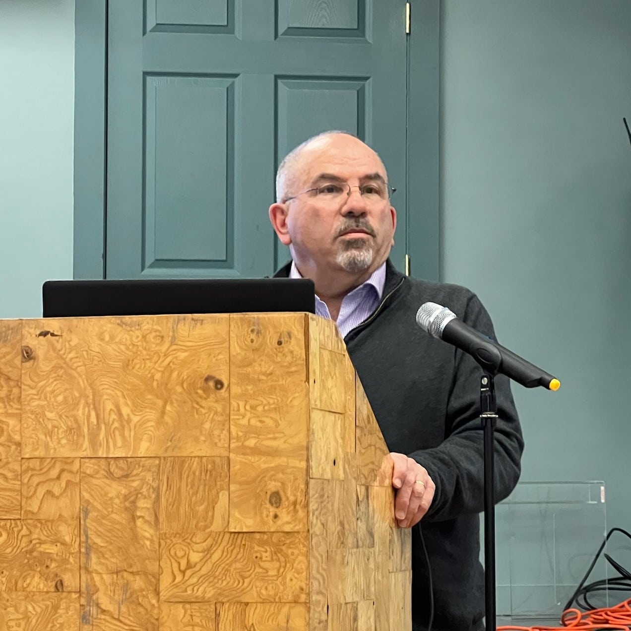 Ira Brezinsky shares the report he authored on the Hilltown Community Ambulance at an informational meeting on April 18.