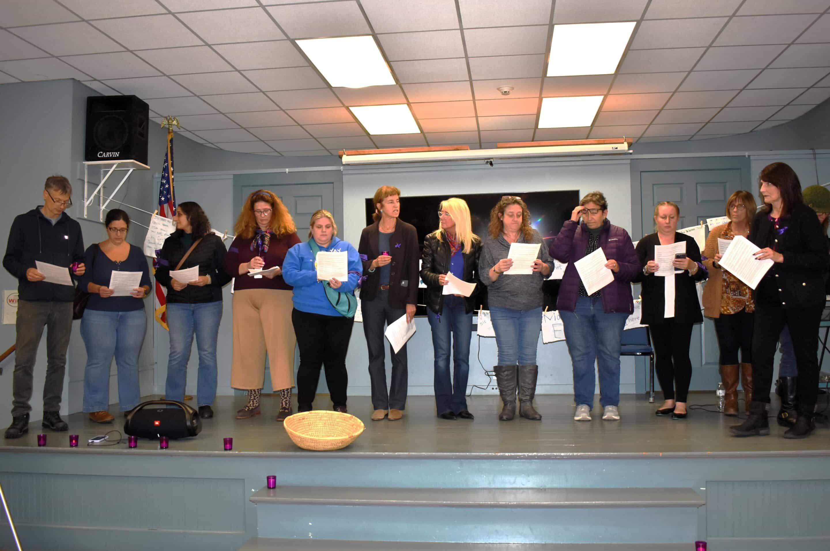 HUNTINGTON — The annual Hilltown Domestic Violence Awareness Vigil was observed inside Stanton Hall on Oct. 16. As community members entered, they were encouraged to sign a banner and write a message on a prayer flag to victims of domestic violence, which were then attached to clotheslines across the stage.