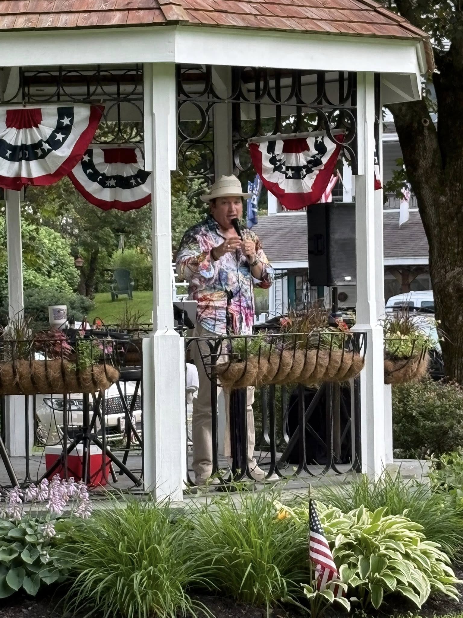 Ray Guillemette Jr. performs as King & Kountry in the Huntington gazebo on July 10 for the kickoff of the Huntington Summer Music Series. Approximately 250 fans relaxed and enjoyed a picnic meal on the Huntington Town Green provided for the kickoff only.