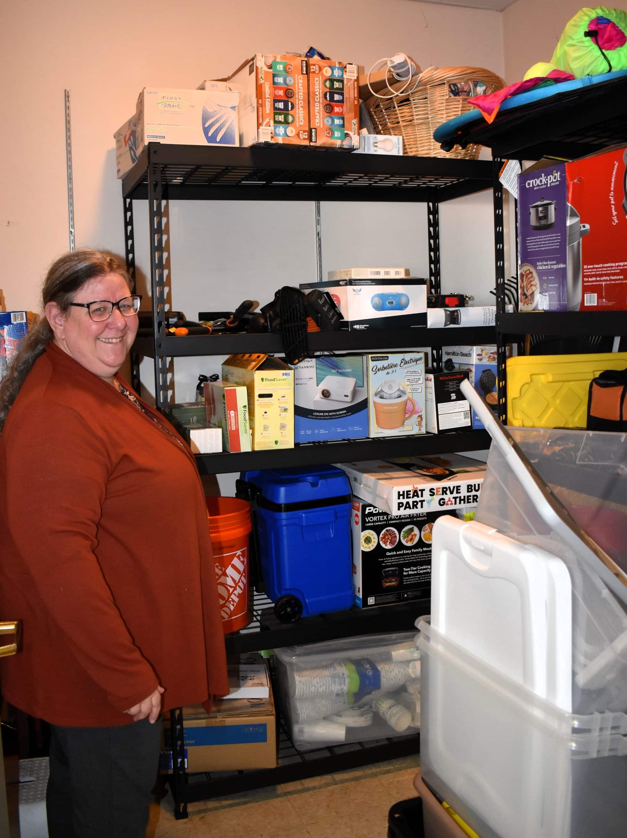 Available now are crock pots, insta pots, a food warmer, projector, ice cream and waffle makers, and a cooler. Also available are construction tools in a bucket, gardening tools in a bucket, a drill, screwdriver sets and pliers.