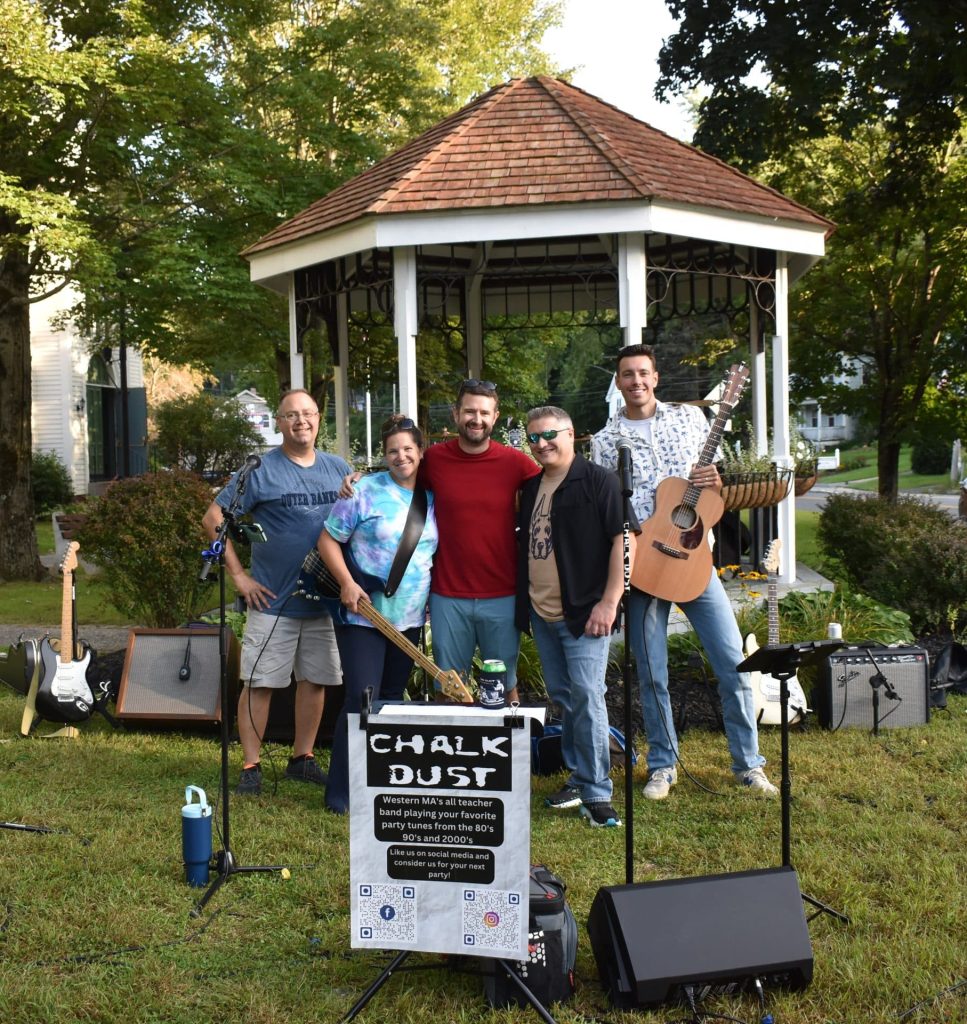 HUNTINGTON — The Huntington Summer Music Series wrapped up on Aug. 22 with a performance by Chalk Dust, a band made up of West Springfield public school teachers Chuck Dufault (English), Natalie Donze (science), Chris Taft (science), Bryan Ouimet (English) and Dan Haryasz (history).