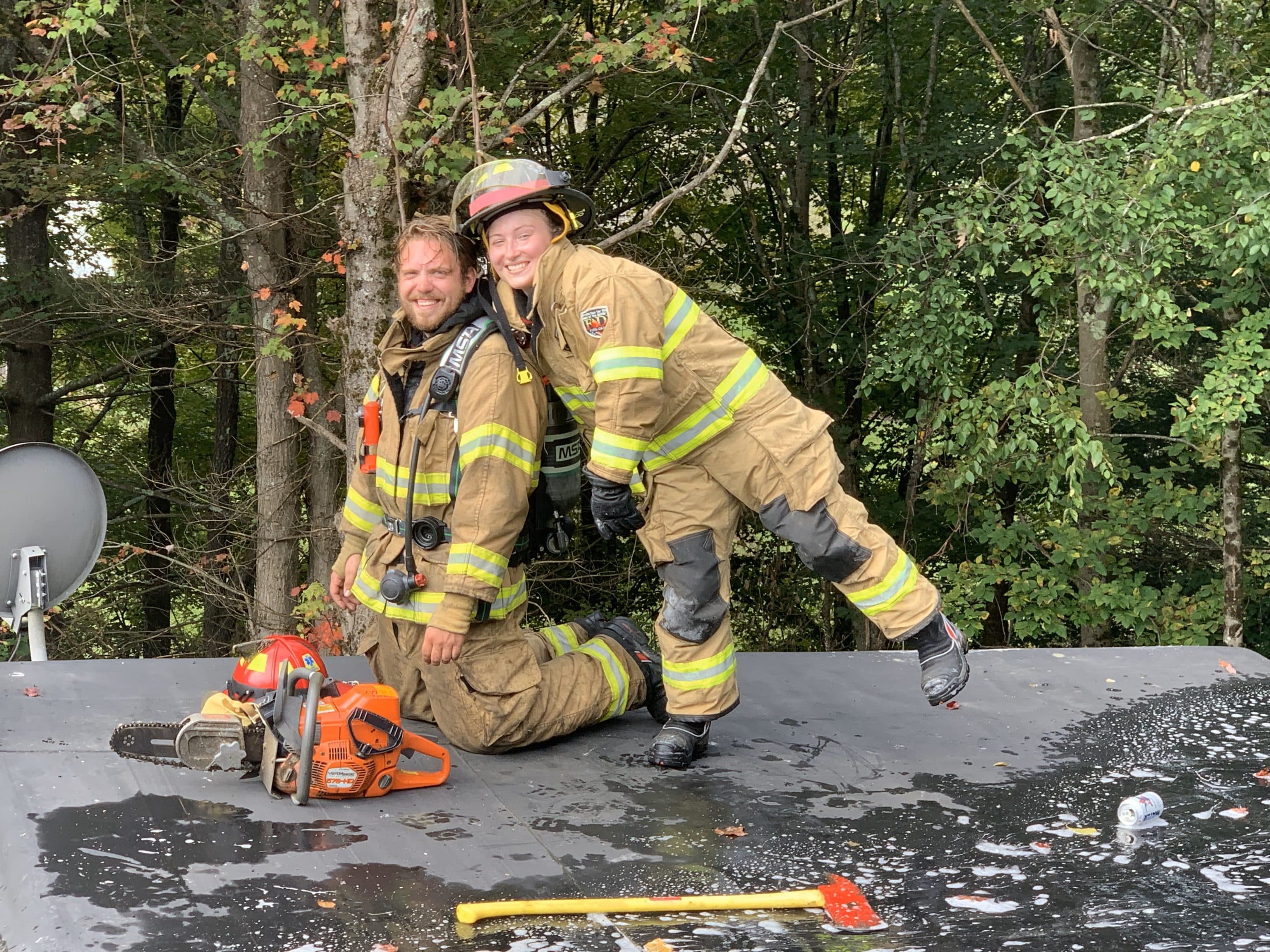 Kevin and Ashley Littlefield having a happy moment during firefighter training.