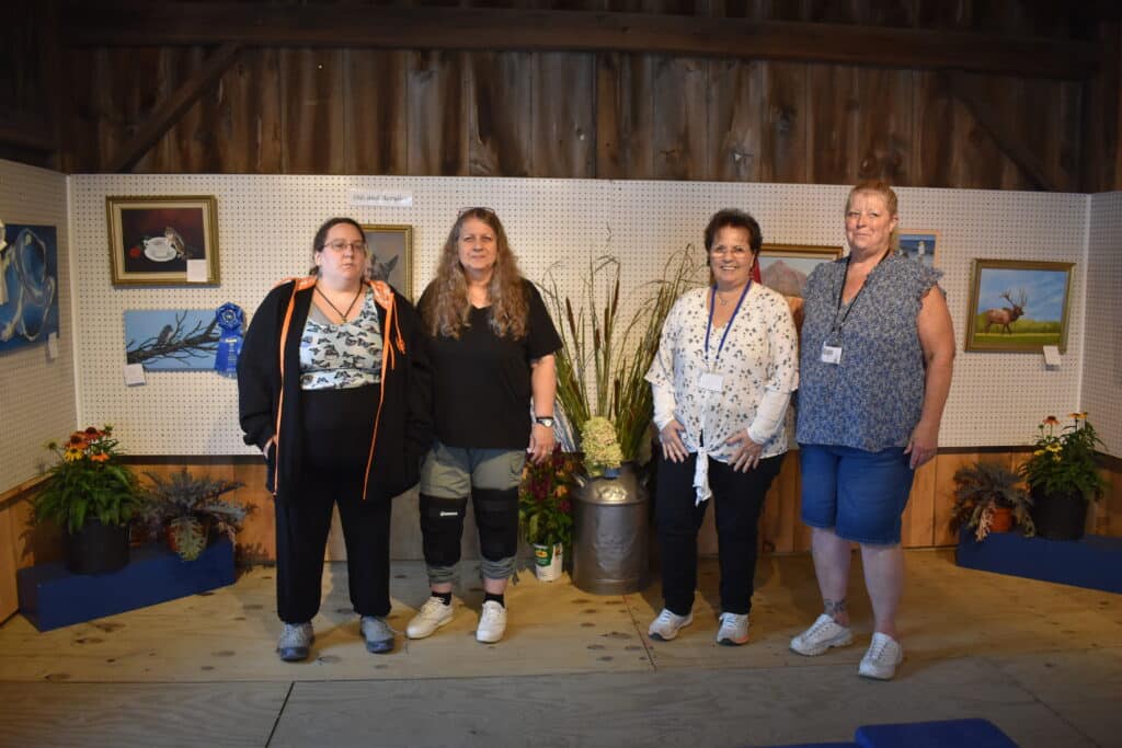 Among those volunteers are Christine Tighe and her daughter Michelle Tighe of East Otis, who were in charge of the 56th annual art show at the Blandford Fair, another unique aspect and big draw to the Blandford Fair, which welcomes people into the gallery with a scarecrow artist painting the scene outside.