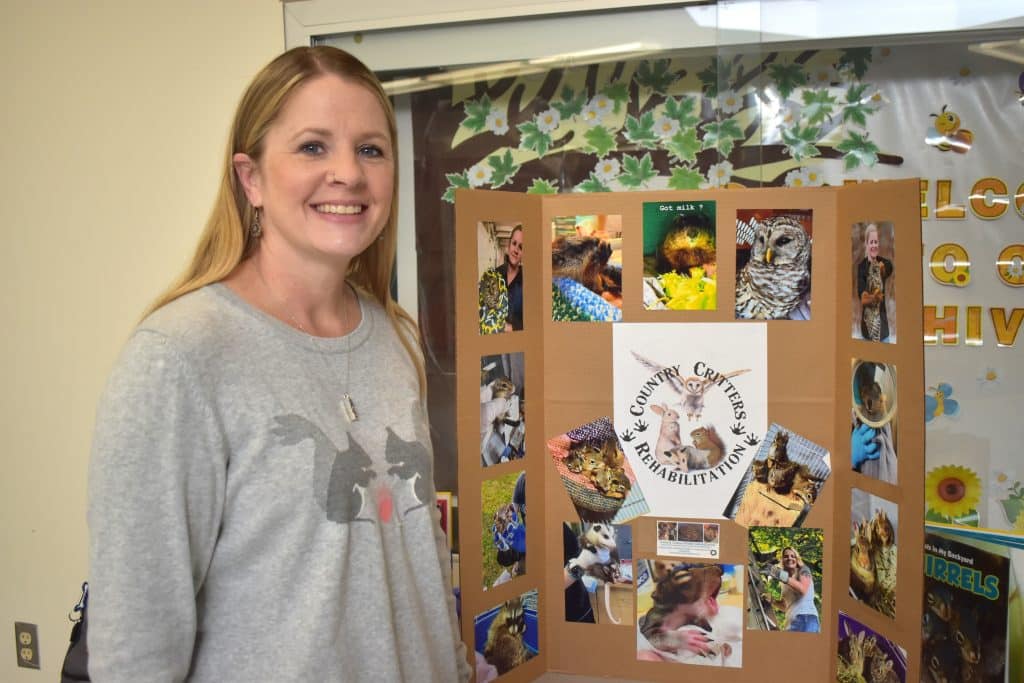 To prepare the students for the subject of caring for wild animals, Petzold invited wildlife rehabilitator Danielle Sullivan of Southwick to come and speak to the students about the work she does to help small animals who have been hurt to recover.