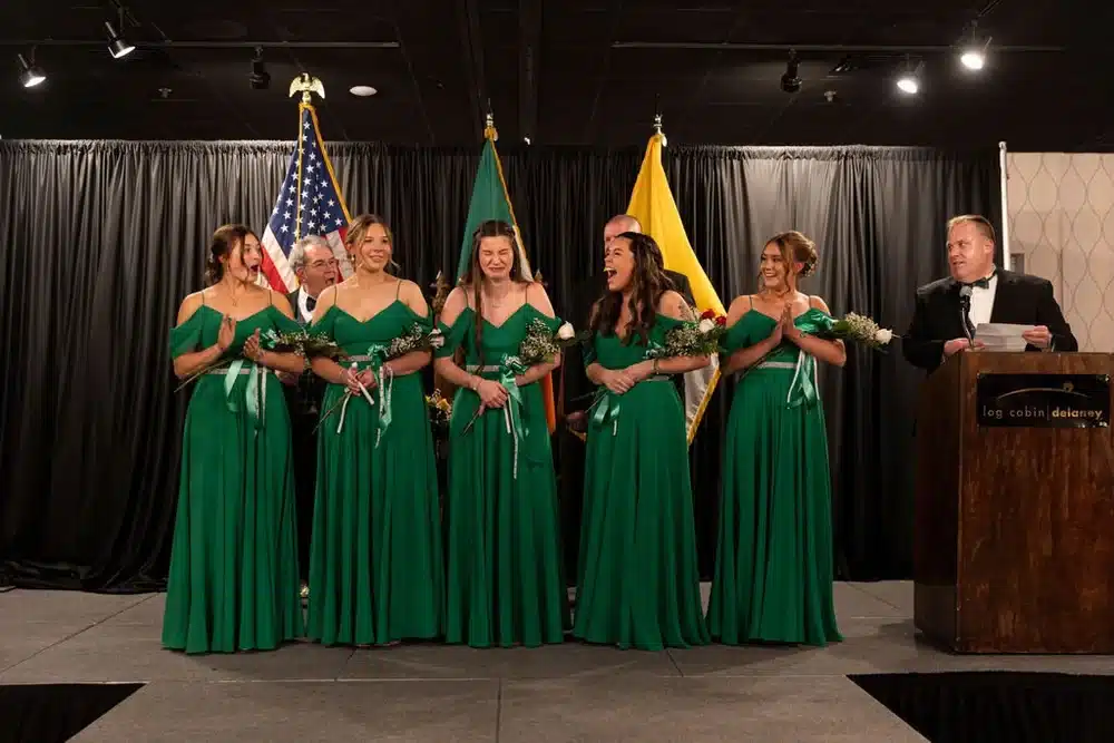 More than 350 guests filled the Log Cabin on Feb. 14 for the annual grand colleen Coronation Ball and awards night, a signature celebration marking the start of Holyoke’s St. Patrick’s season. The event honored several distinguished community members and culminated in the crowning of Christie as the 2026 grand colleen.