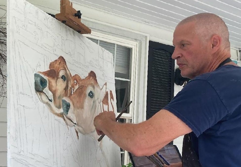 On display at the show in Chester, Delisle will have watercolor sketches along with larger oil paintings for sale. One of his paintings, of Jersey cows in stalls at feeding time, is 8 feet wide.