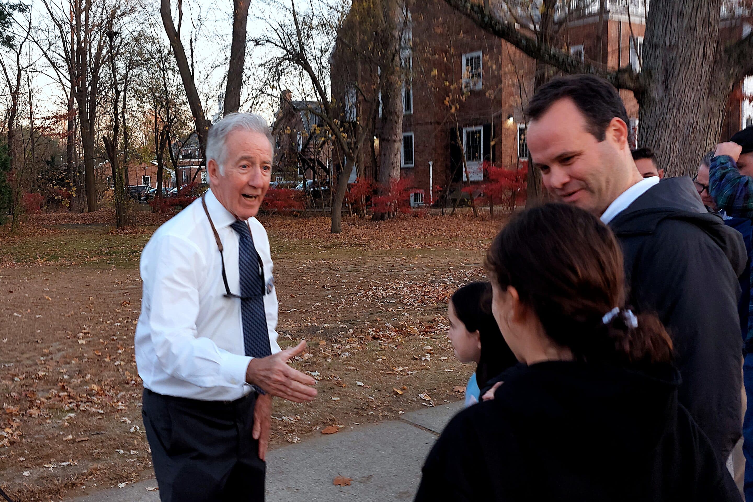 U.S. Rep. Richard Neal greets voters outside the Longmeadow Community House on Election Day.
