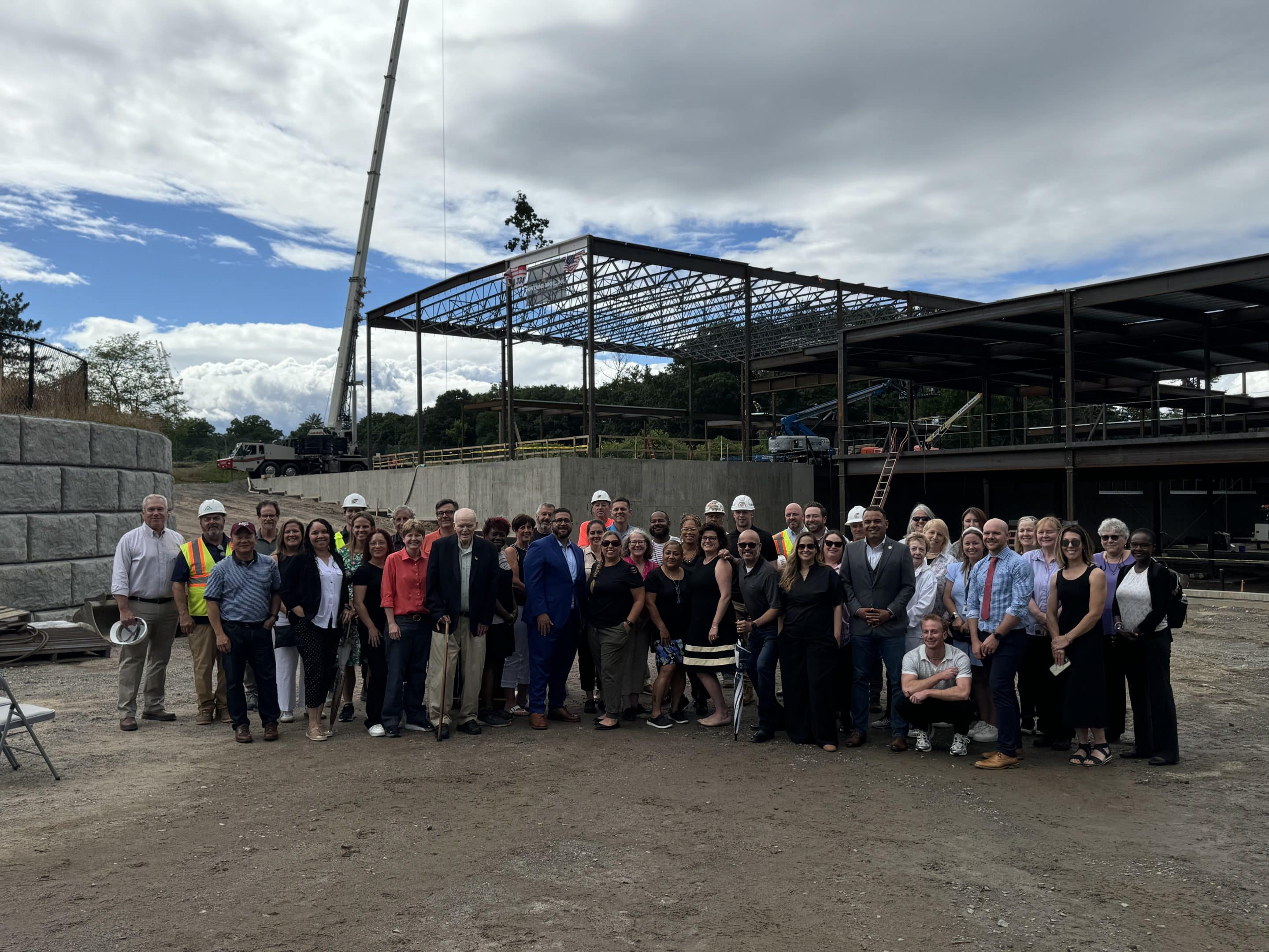 Holyoke leaders and stakeholders of the new middle school building gather on site for a group photo.