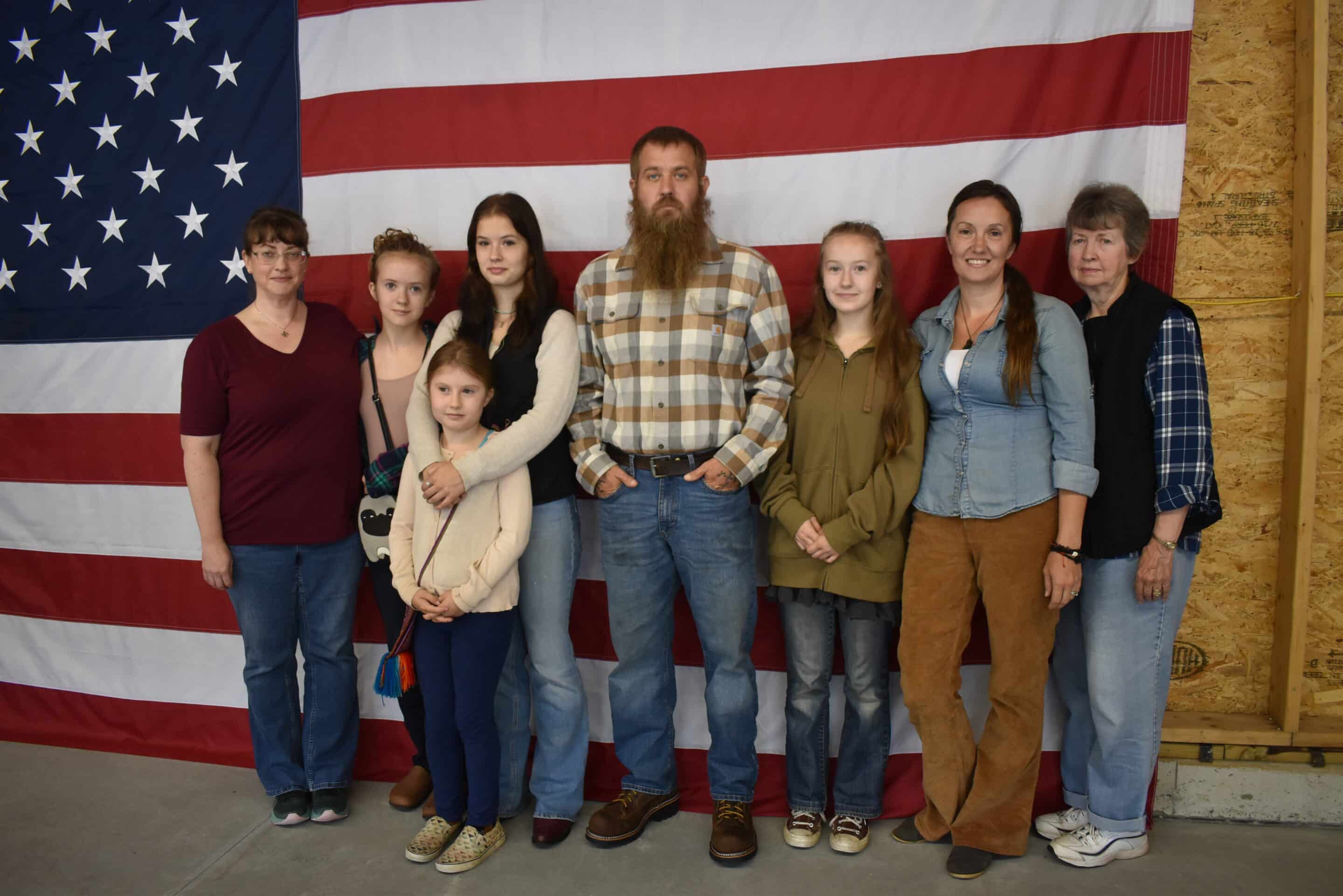 The Boomsma family from left, Julia Boomsma, Olivia Boomsma, Greta and Penelope (in front) Boomsma, Mark Boomsma, who built the garage; Charley Boomsma, Maureen Boomsma and Doretta Boomsma.