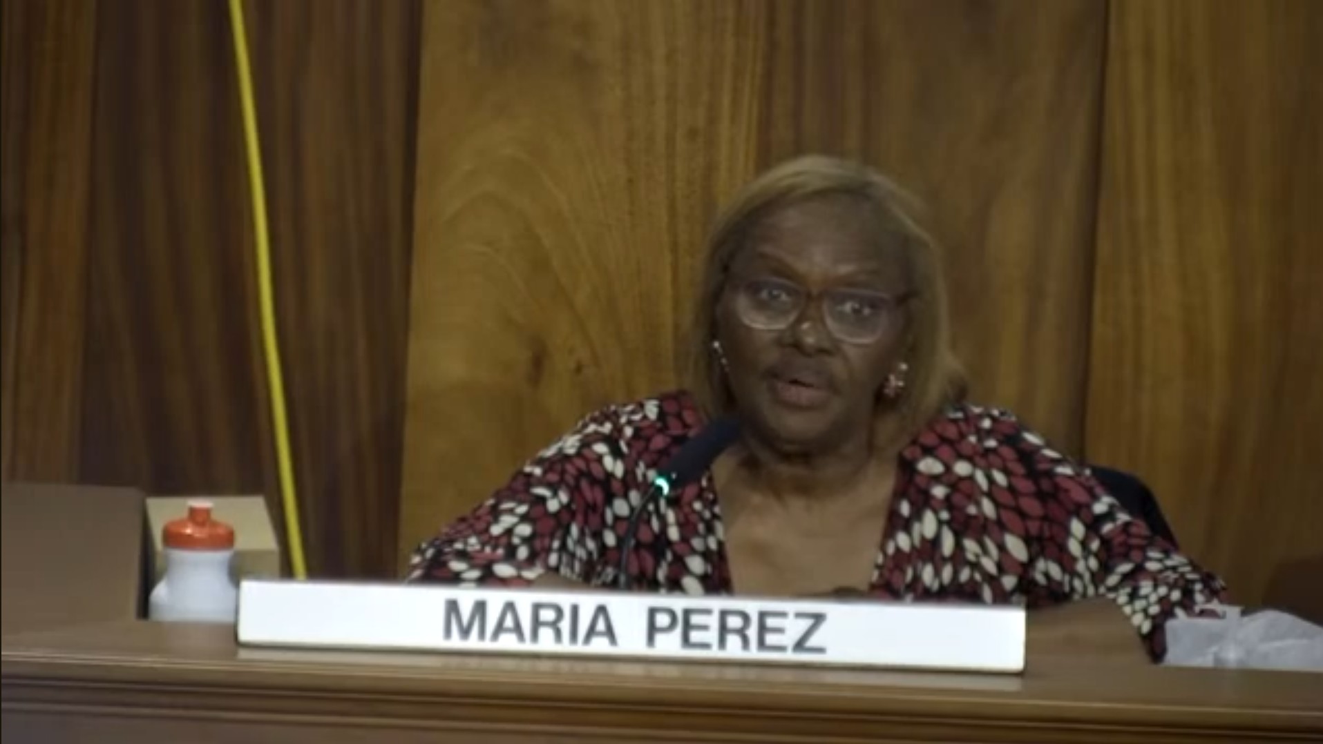 A screenshot of City Councilor Maria Perez from a late 2024 council meeting.