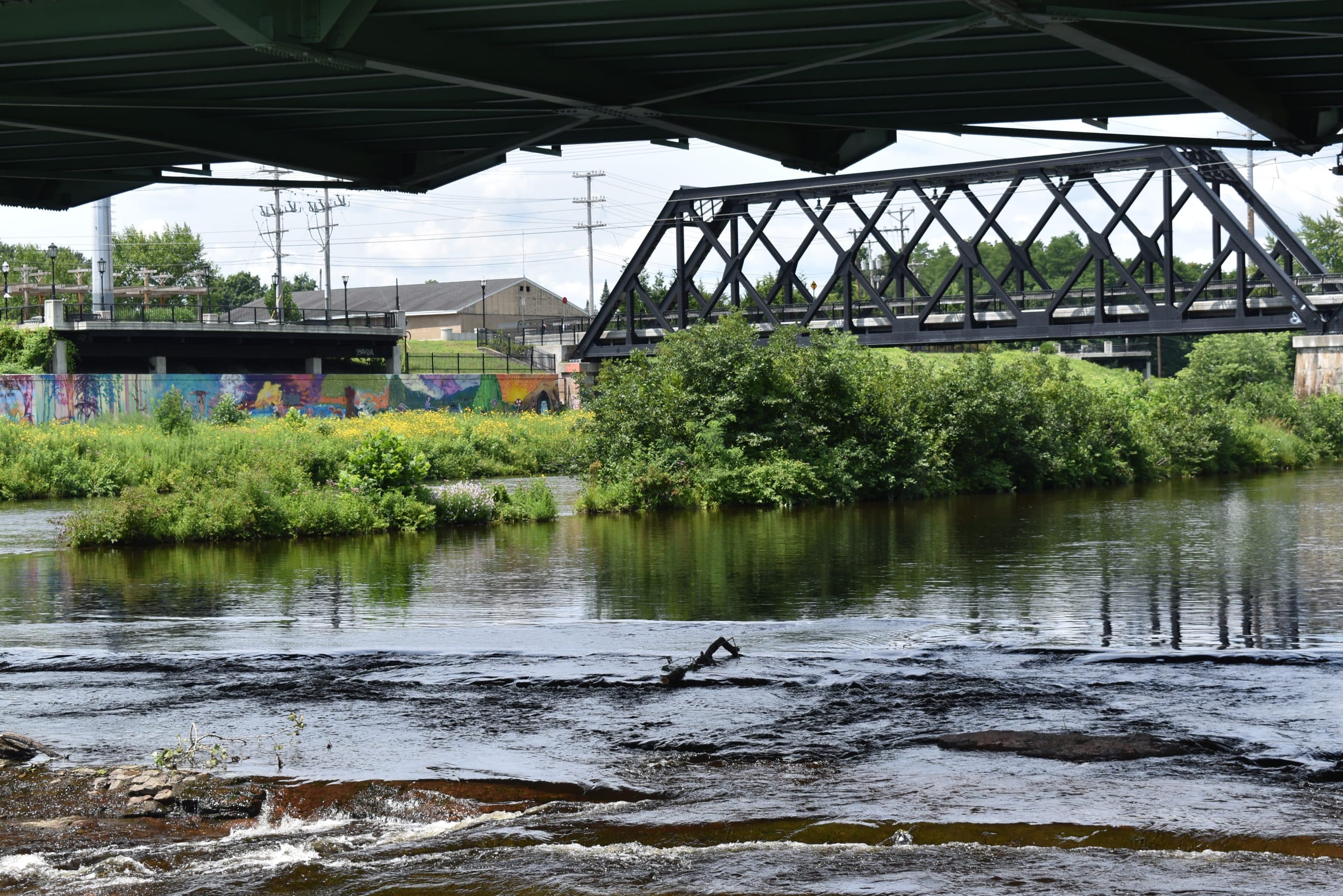 The Westfield River flows under the Great River Bridges north of Half-Mile Falls Park in Westfield.