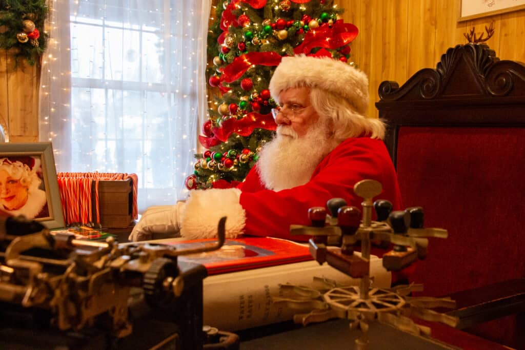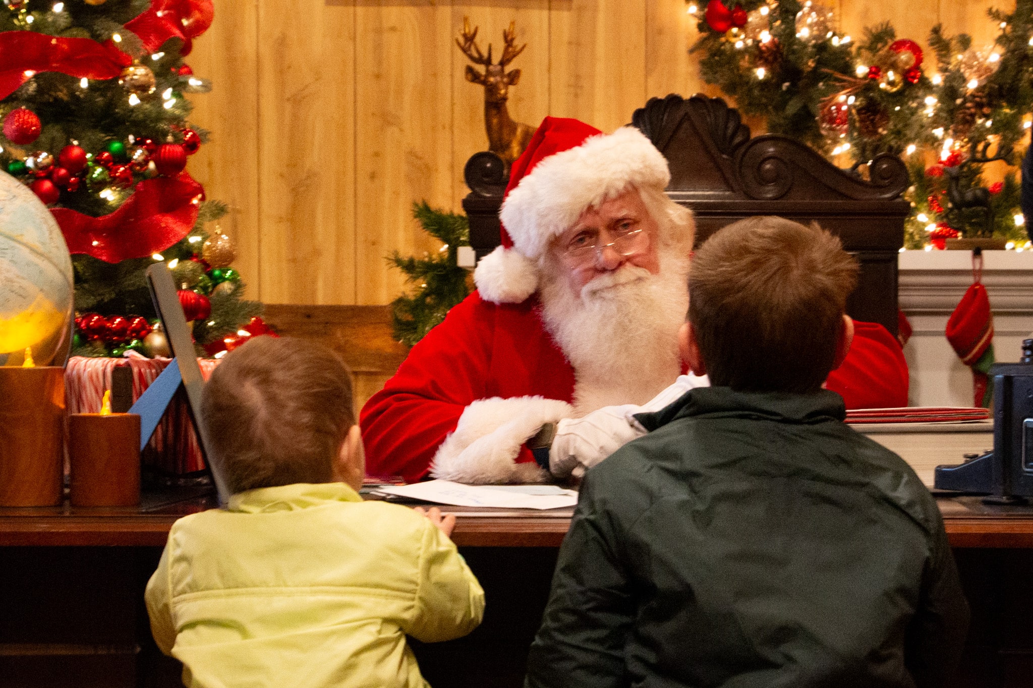 Santa listens to two young boys as they discuss what they would like for Christmas.