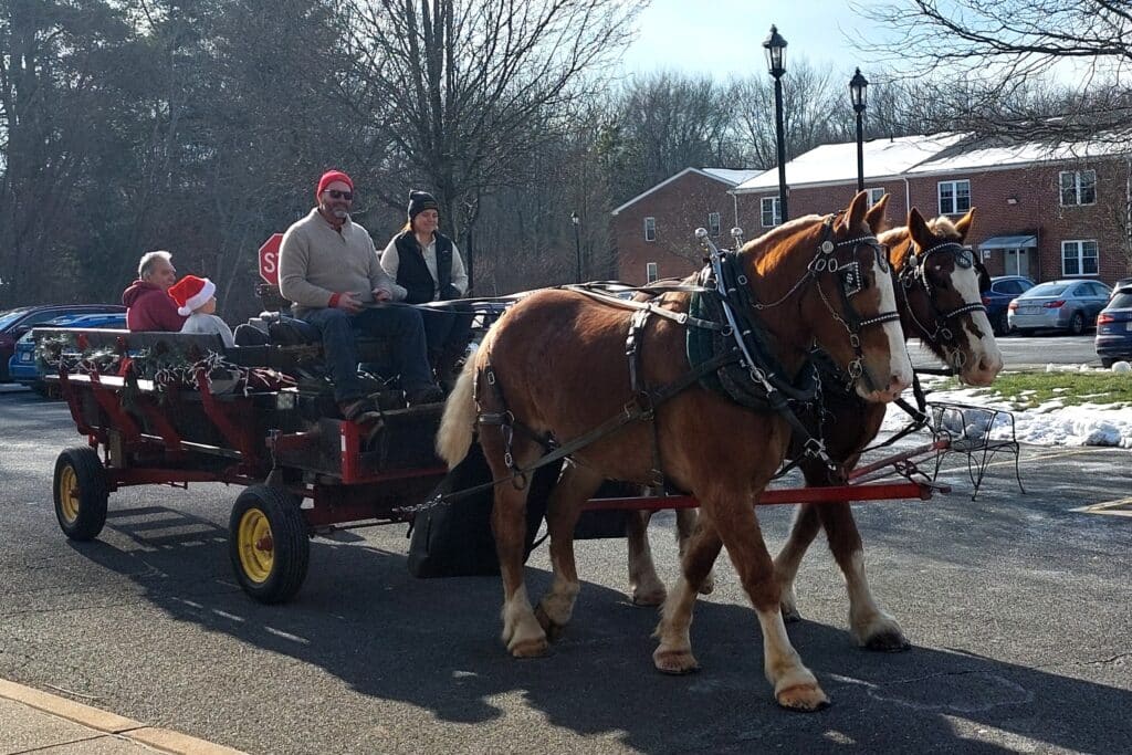 Meanwhile, dozens of people climbed onto the benches of a horse-drawn carriage driven by Keith Ouelette, owner of Mainely Drafts Horse and Carriage. His daughter, Mikayla Ouelette tended to the two large Belgian draft horses — Lenny and Lady — who pulled riders around the property to experience a winter wonderland.