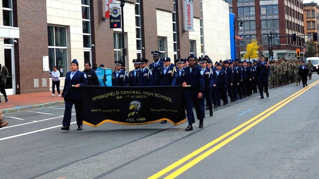 Springfield Central High School’s Air Force JROTC marches in formation.
