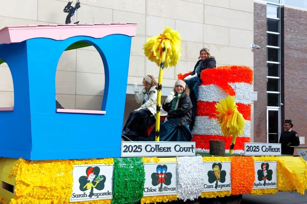 The 2025 Colleen Court rides atop a Dr. Suess-themed float.