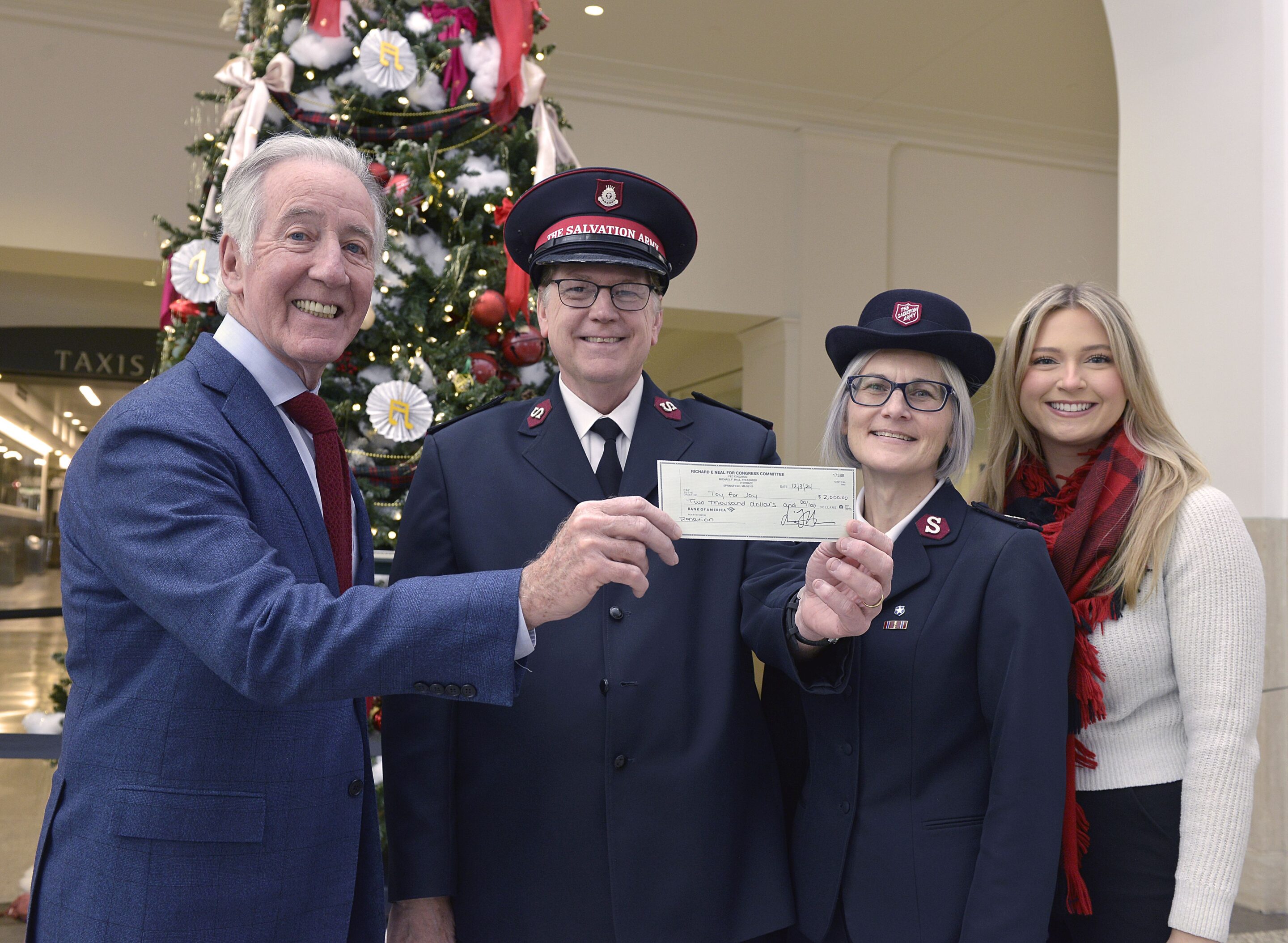 The following day, U.S. Rep. Richard Neal (D-Springfield) personally delivered his $2,000 donation to Salvation Army Major Donald G. Spencer and his wife, Major Paula Spencer, at Union Station.