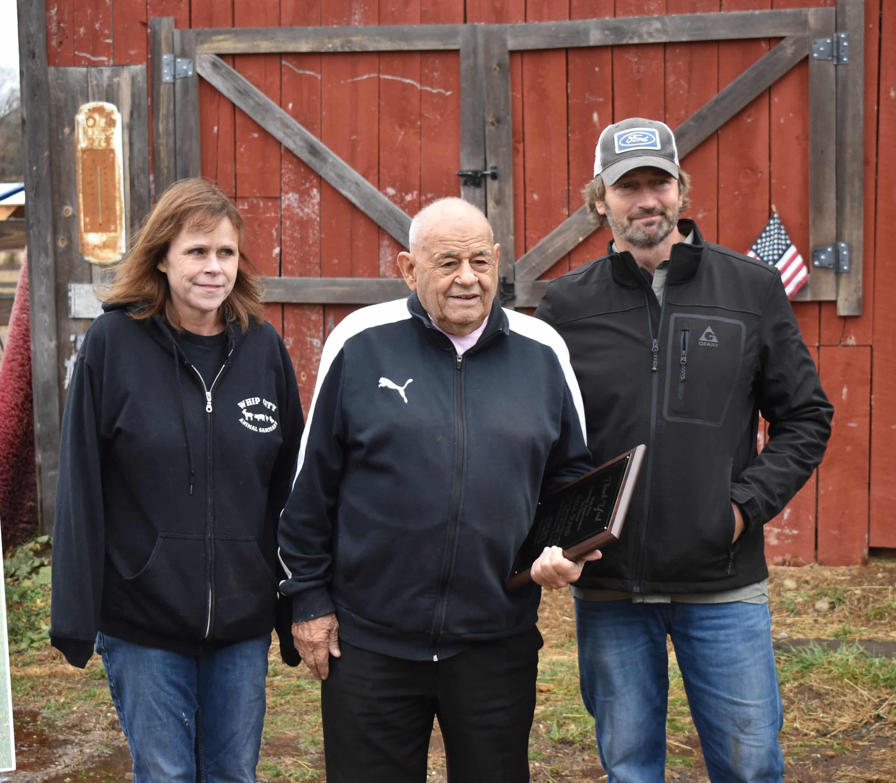 WESTFIELD — The Whip City Animal Sanctuary family of volunteers and friends honored William Reed on a chilly and damp Saturday morning, Nov. 23, to thank him for his gift of 11 acres to the home for rescued and surrendered farm animals, many of whom have been neglected and abused.